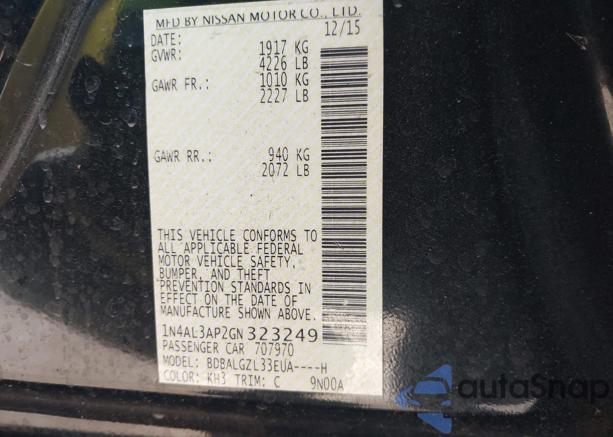 Samochód Nissan Altima 2016 (VIN 1N4AL3AP2GN323249) nie był wcześniej licytowany. Dokumenty są czyste, przebieg odpowiada lub jest niższy niż średnia rynku. Sprzedaje go firma ubezpieczeniowa – polecamy zakup. Dostawa do portu zajmie ok. 6–8 tygodni.