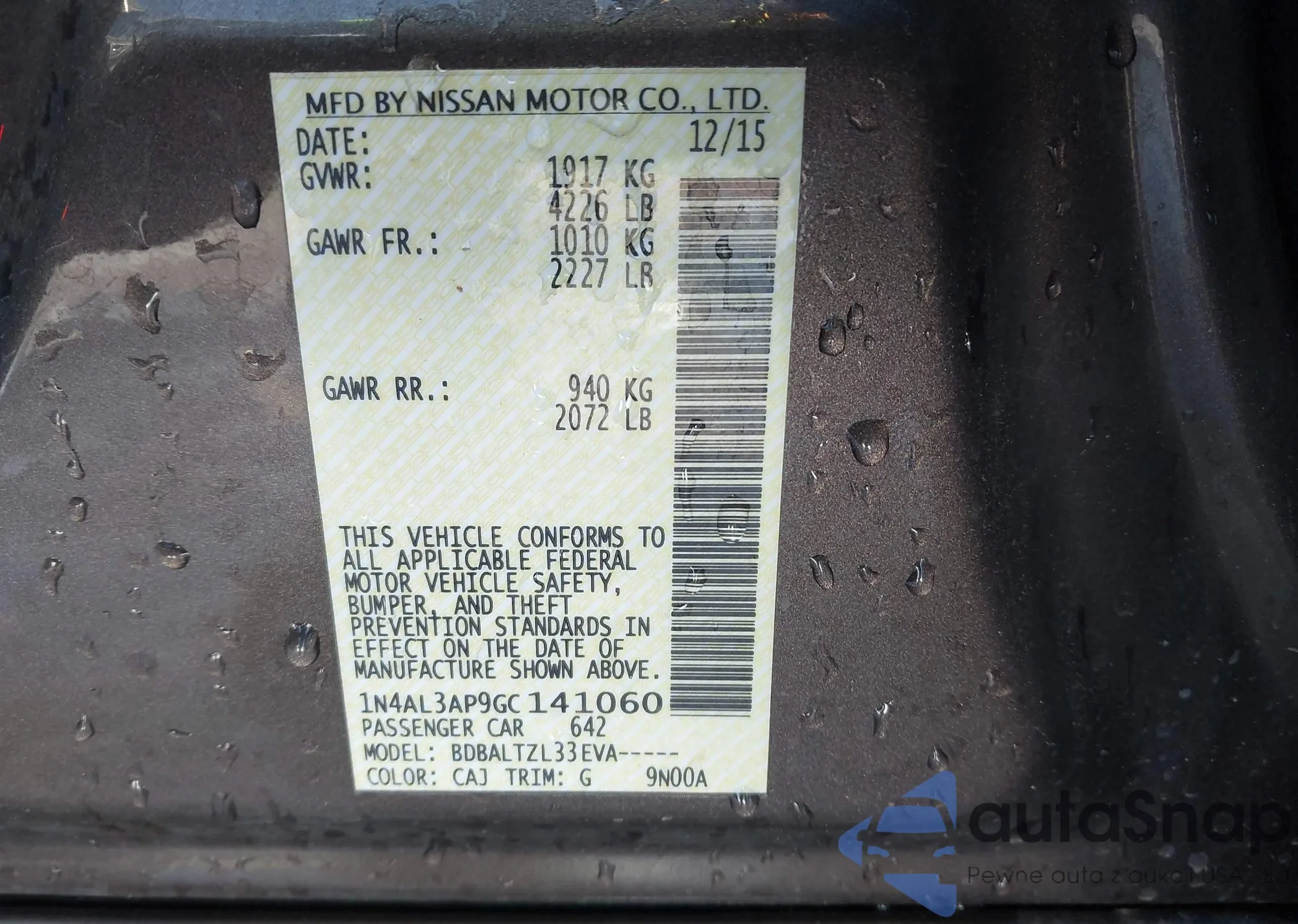 • VIN: 1N4AL3AP9GC141060