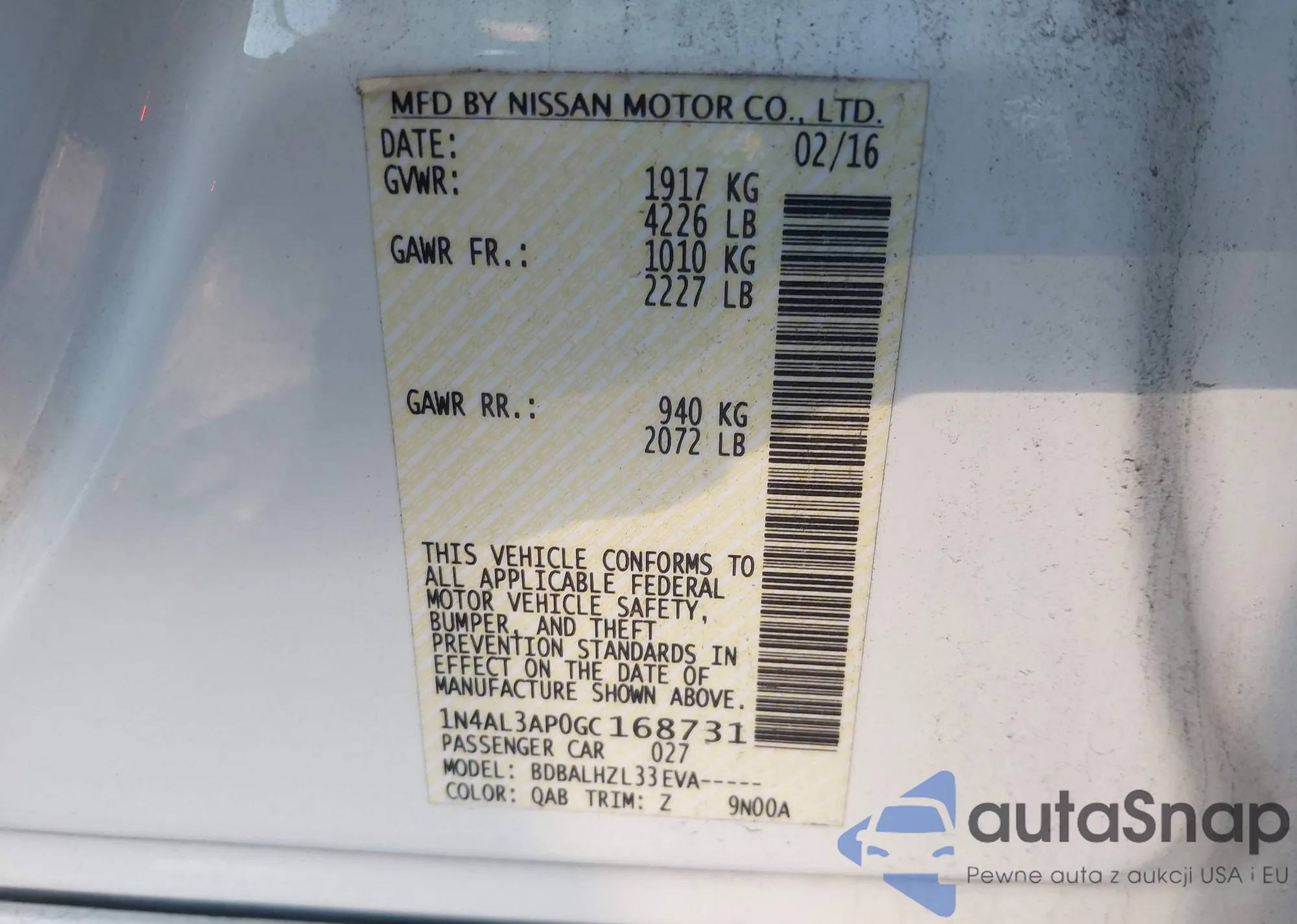 VIN: 1N4AL3AP0GC168731