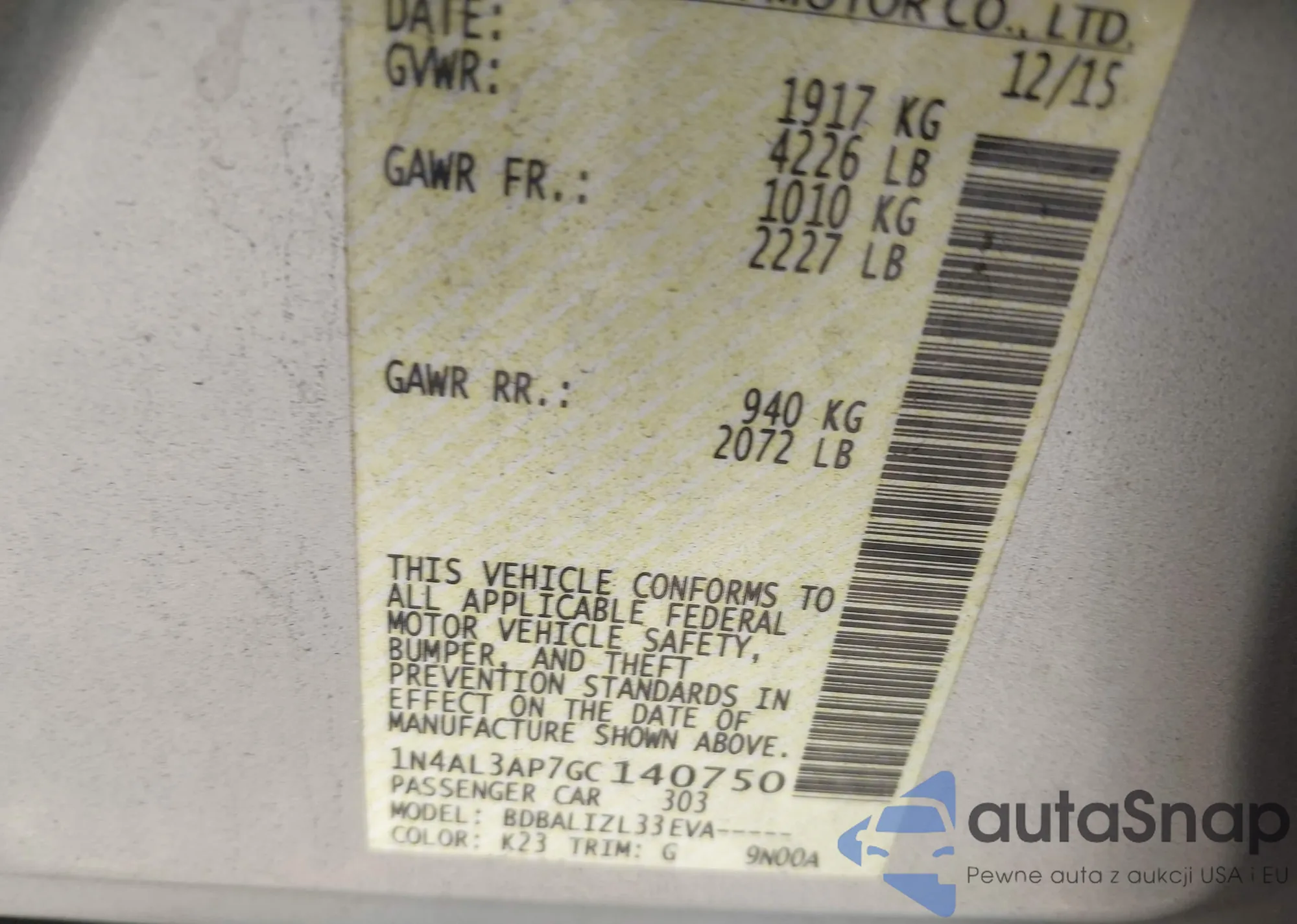 • VIN: 1N4AL3AP7GC140750