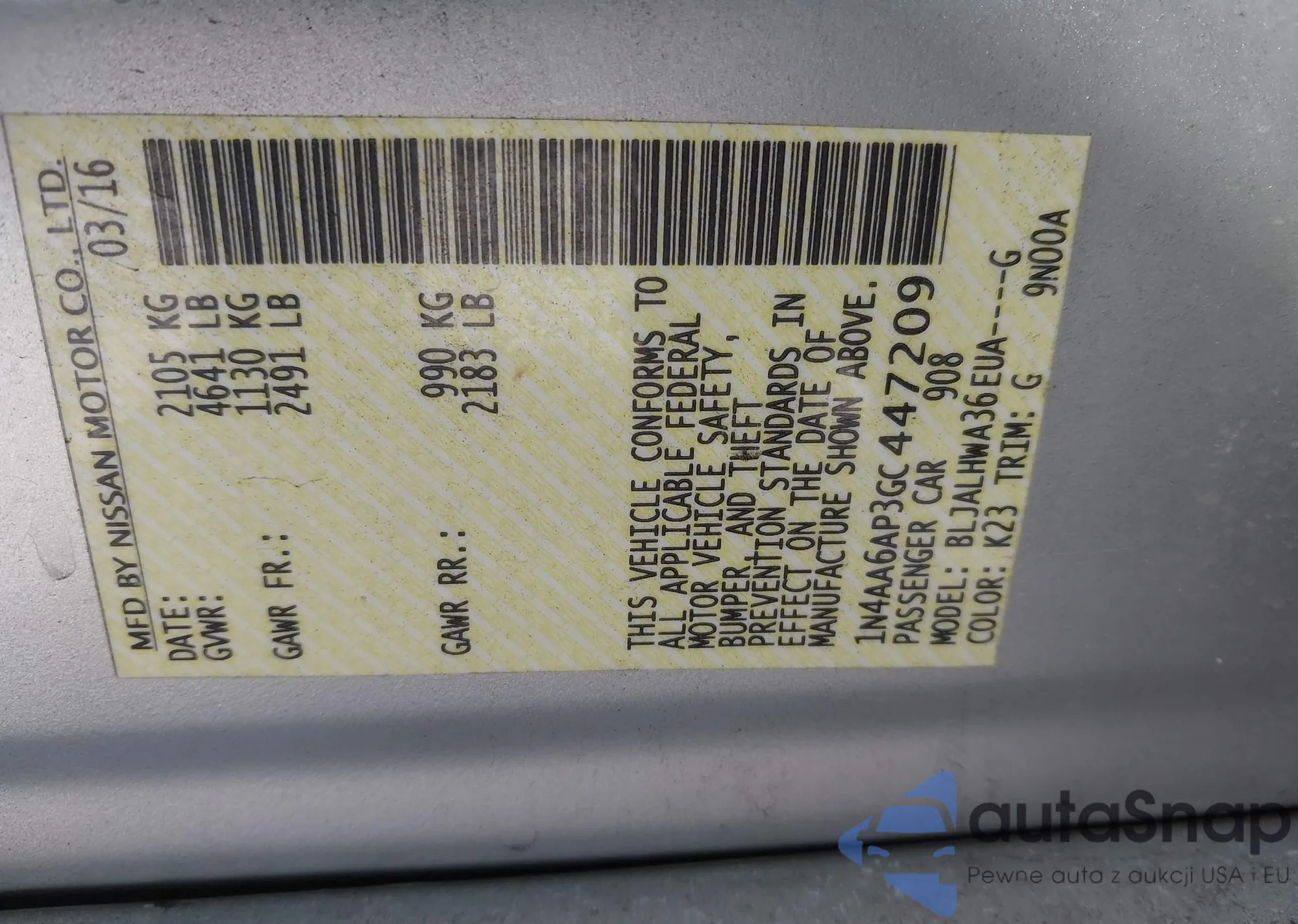 • VIN: 1N4AA6AP3GC447209