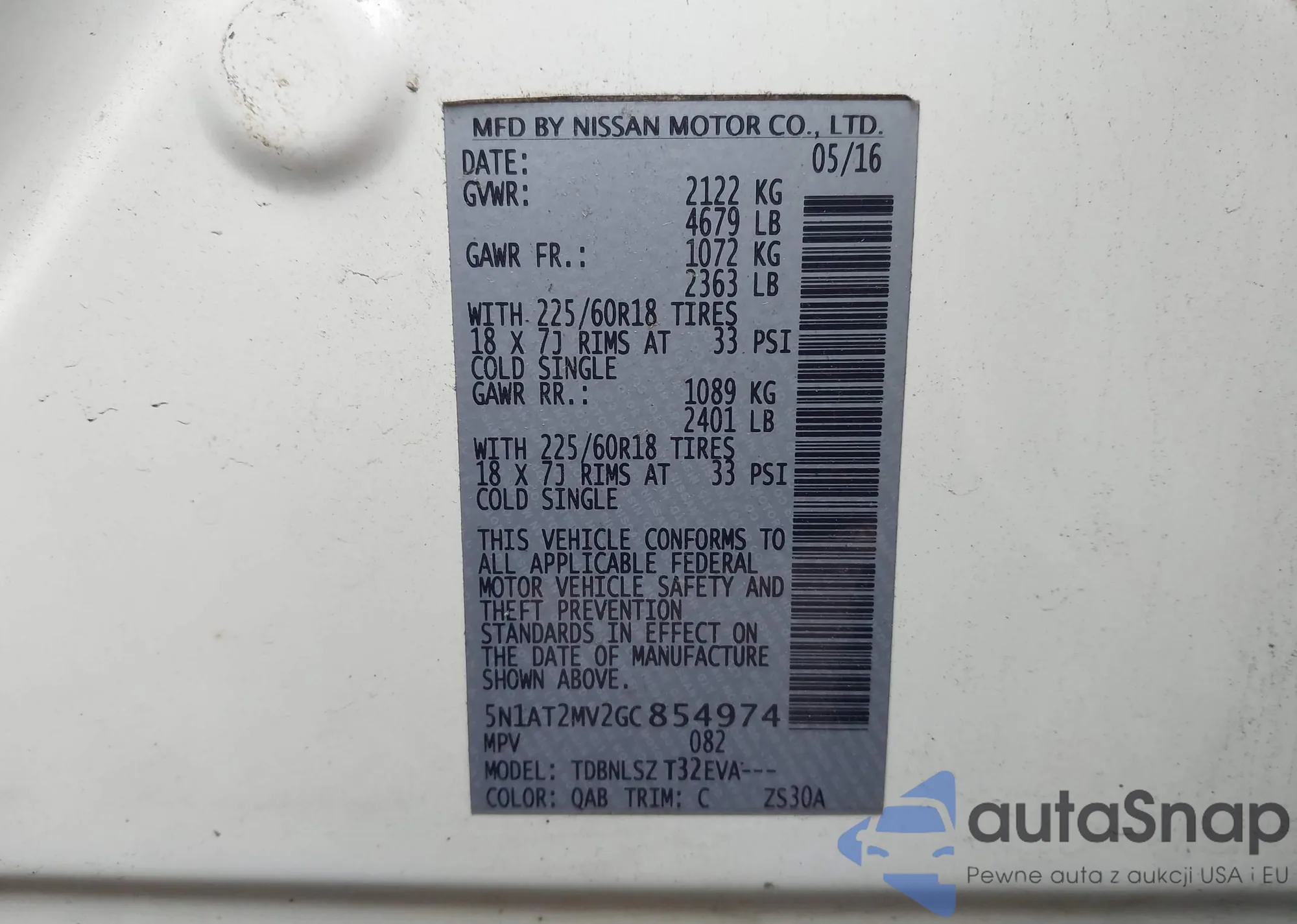 Samochód Nissan Rogue 2016 (VIN 5N1AT2MV2GC854974) nie był wcześniej licytowany. Dokumenty są czyste, przebieg odpowiada lub jest niższy niż średnia rynku. Sprzedaje go firma ubezpieczeniowa – polecamy zakup. Dostawa do portu zajmie ok. 6–8 tygodni.