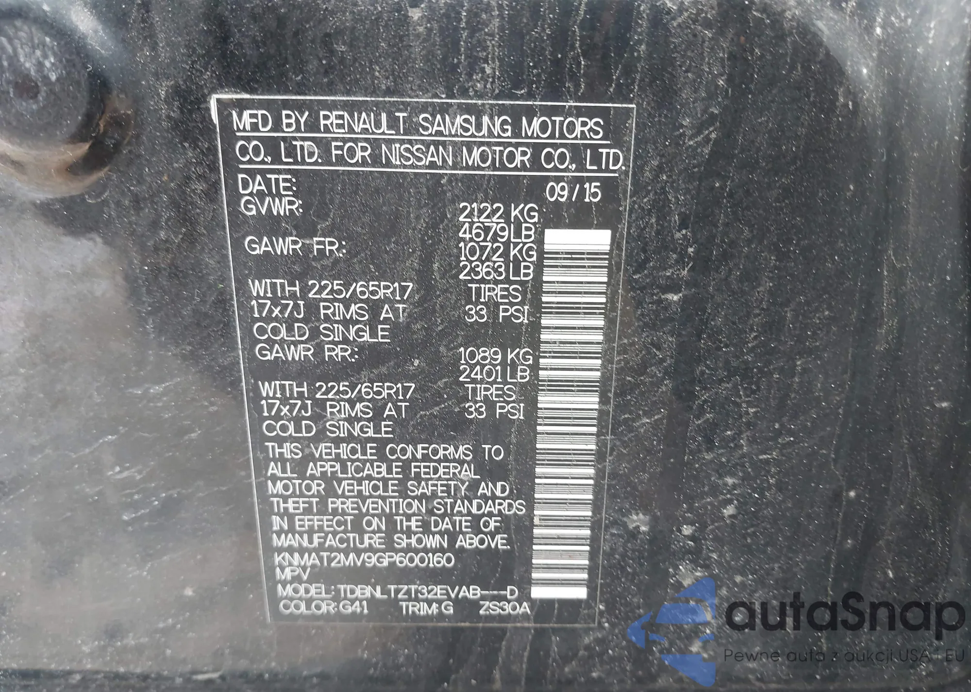 • VIN: KNMAT2MV9GP600160