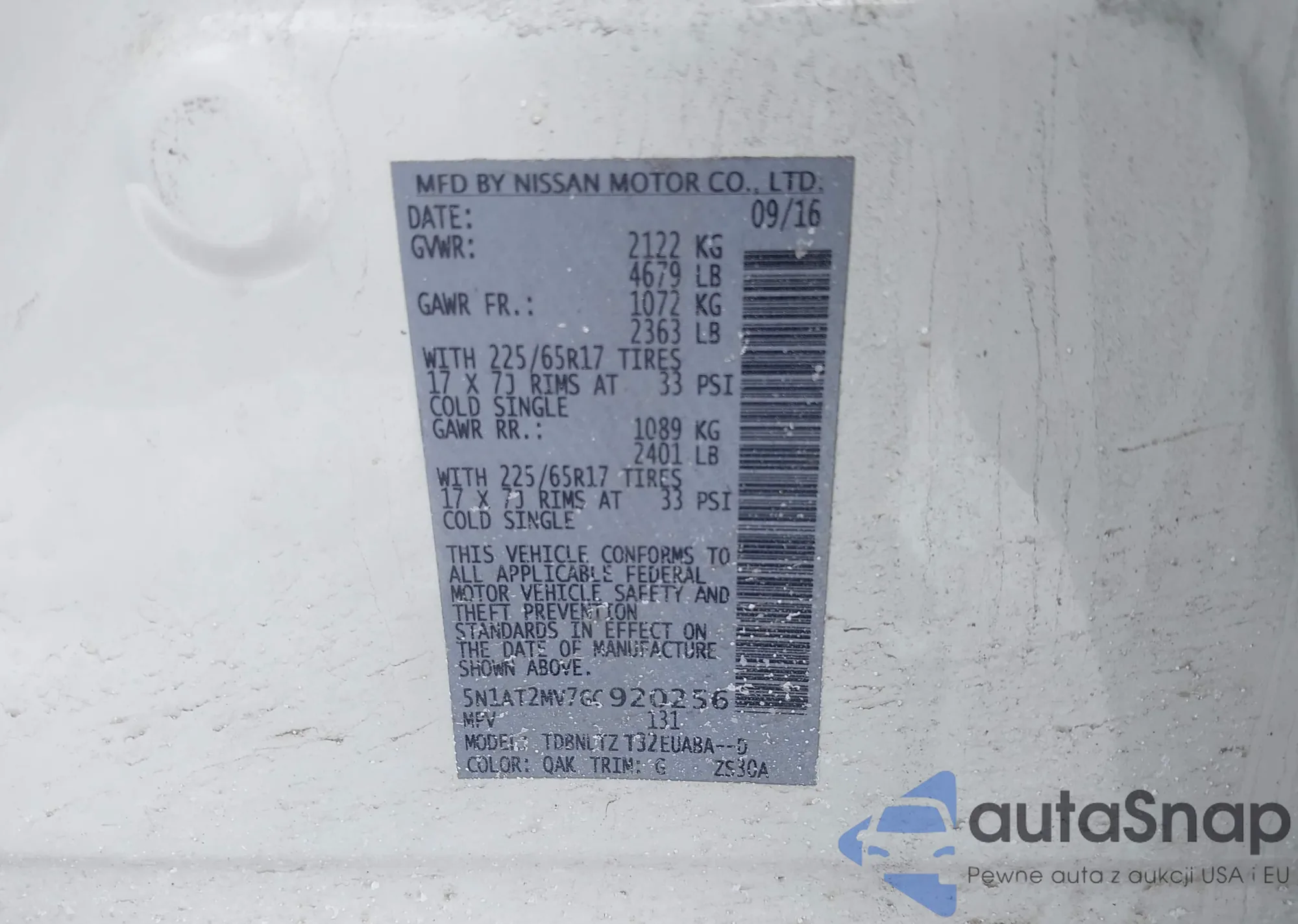 Samochód Nissan Rogue 2016 (VIN 5N1AT2MV7GC920256) nie był wcześniej licytowany. Dokumenty są czyste, przebieg odpowiada lub jest niższy niż średnia rynku. Sprzedaje go firma ubezpieczeniowa – polecamy zakup. Dostawa do portu zajmie ok. 6–8 tygodni.