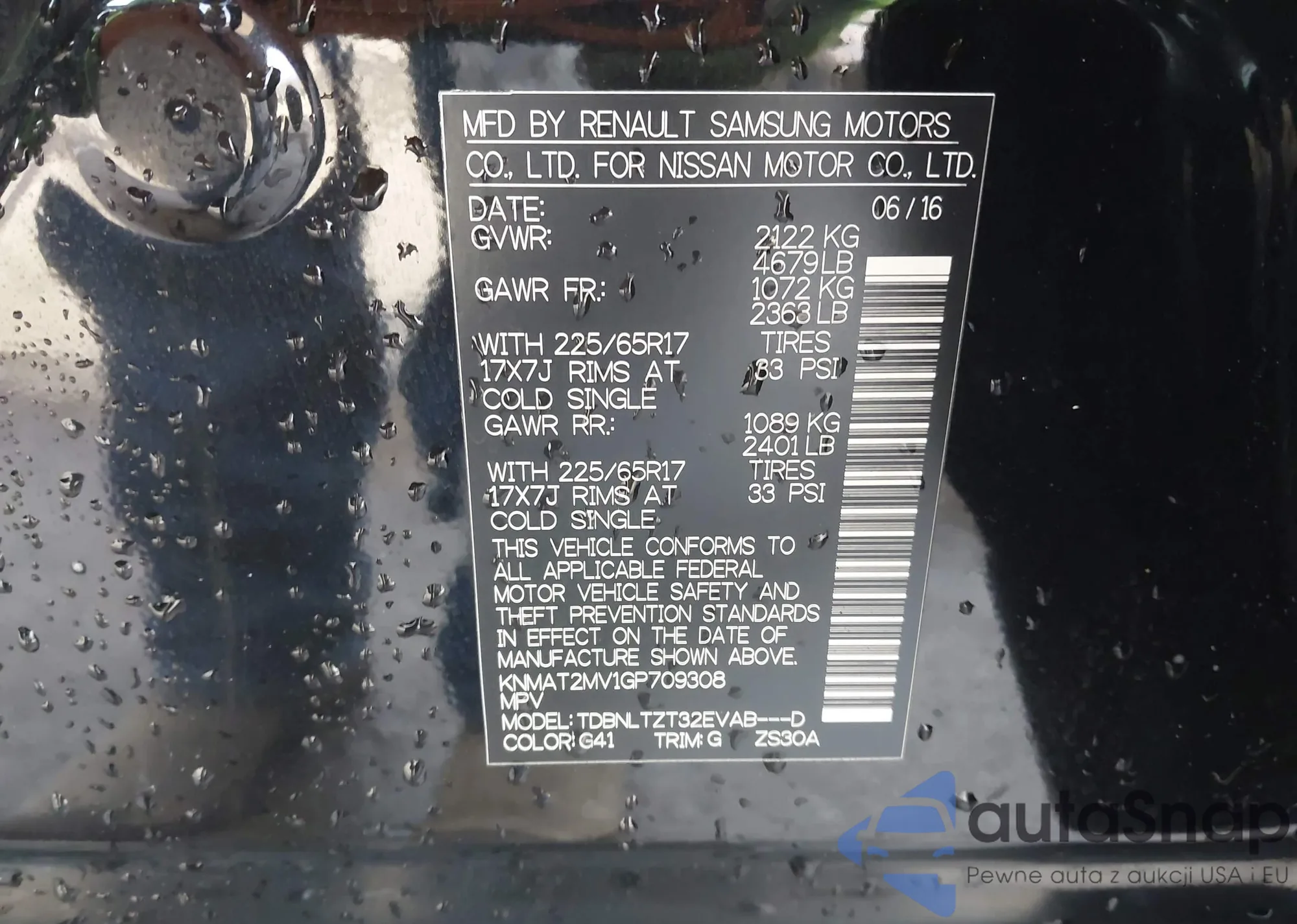 Samochód Nissan Rogue 2016 (VIN KNMAT2MV1GP709308) nie był wcześniej licytowany. Dokumenty są czyste, przebieg odpowiada lub jest niższy niż średnia rynku. Sprzedaje go firma ubezpieczeniowa – polecamy zakup. Dostawa do portu zajmie ok. 6–8 tygodni.