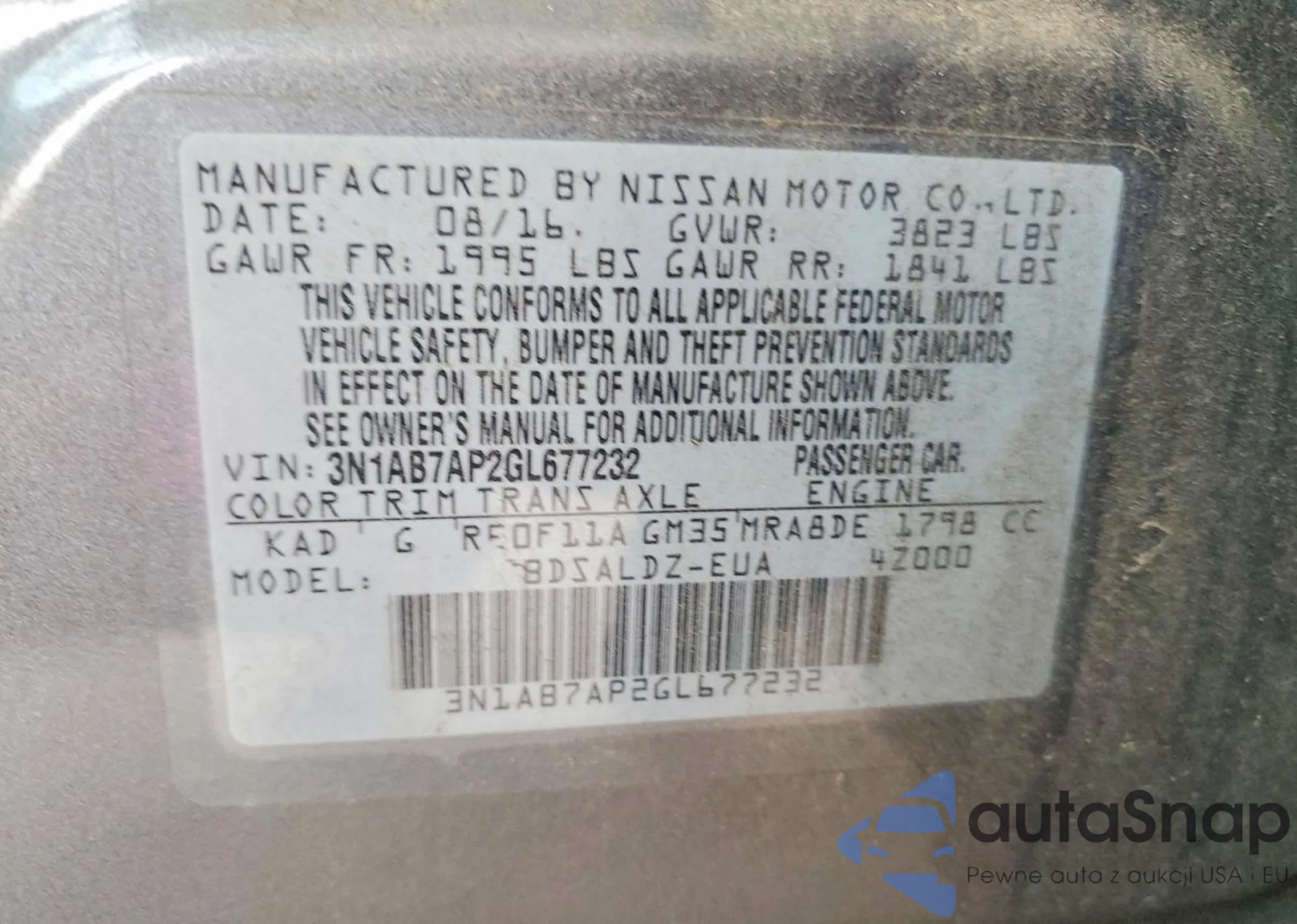 Samochód Nissan Sentra 2016 (VIN 3N1AB7AP2GL677232) sprzedaje go niezweryfikowany sprzedawca. Zalecamy raport Carfax i potwierdzenie możliwości rejestracji pojazdu przed zakupem.