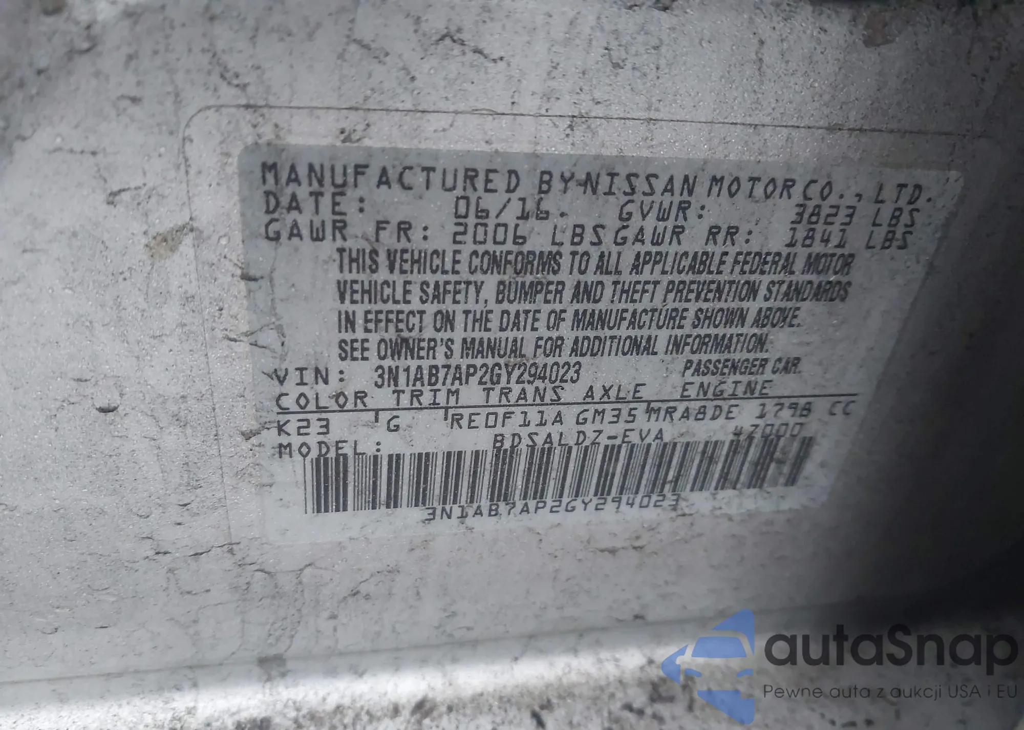 VIN: 3N1AB7AP2GY294023