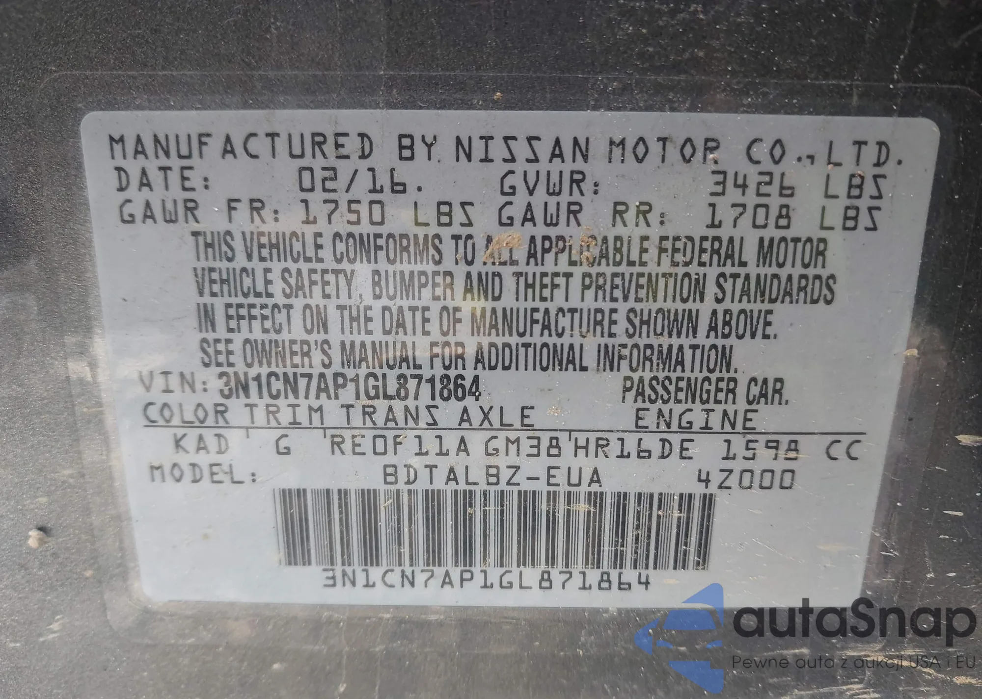 • VIN: 3N1CN7AP1GL871864