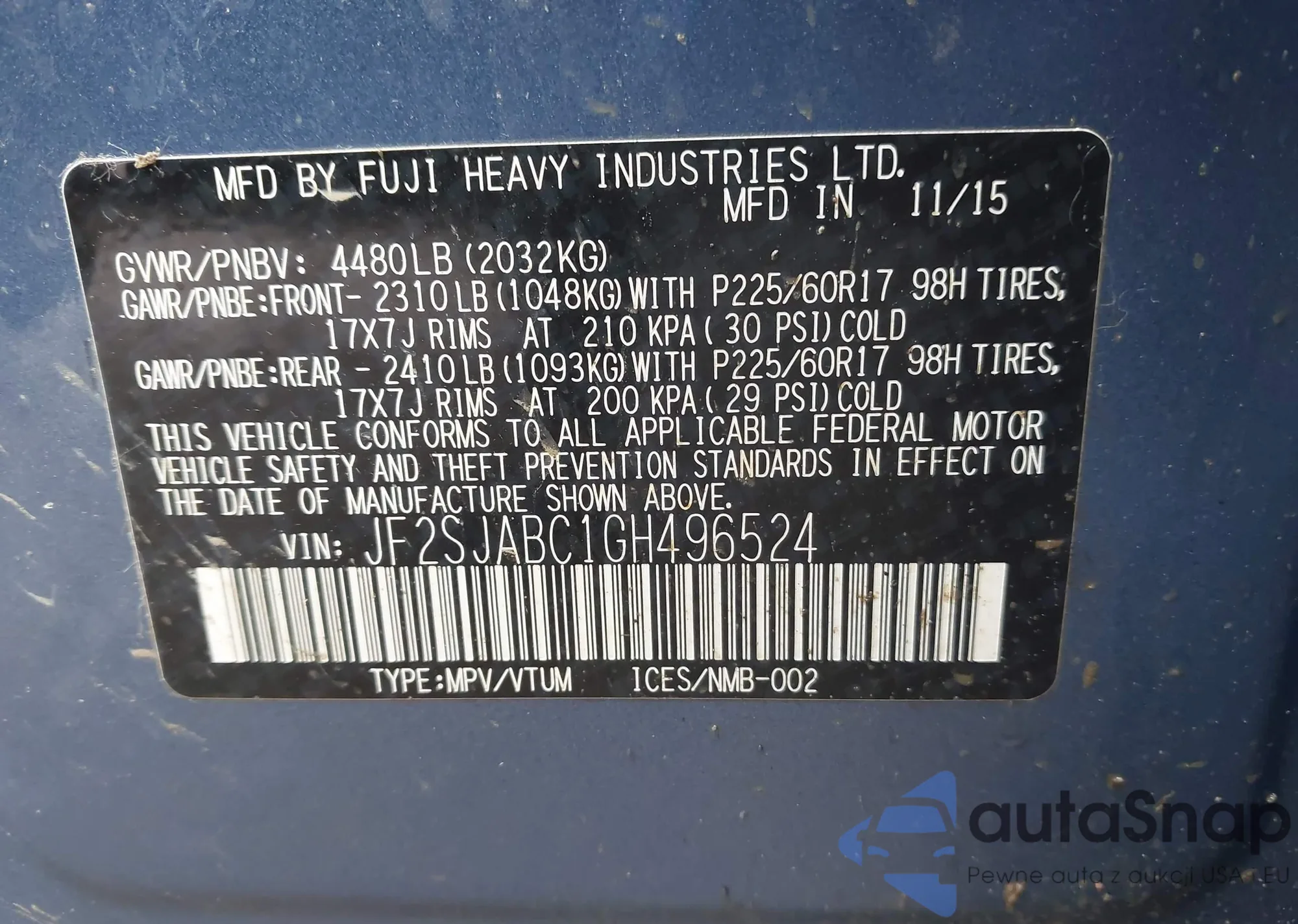 VIN: JF2SJABC1GH496524