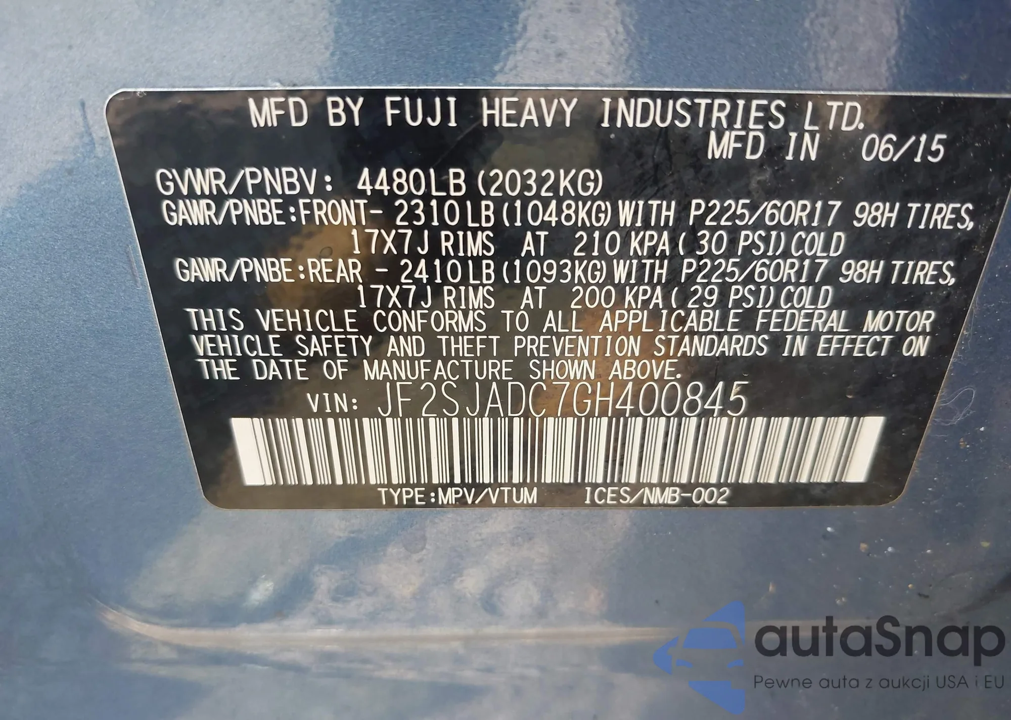 VIN: JF2SJADC7GH400845