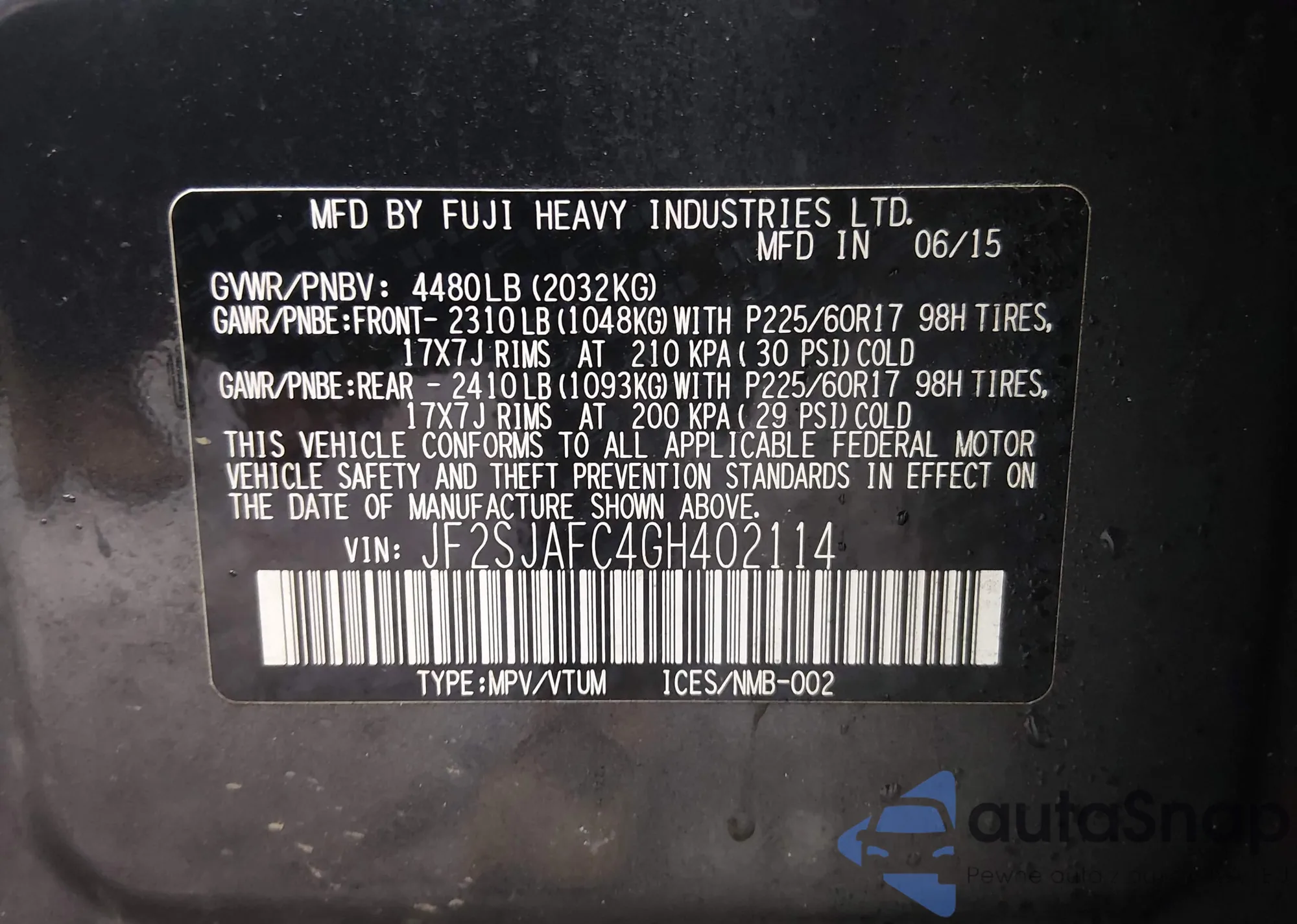 VIN: JF2SJAFC4GH402114
