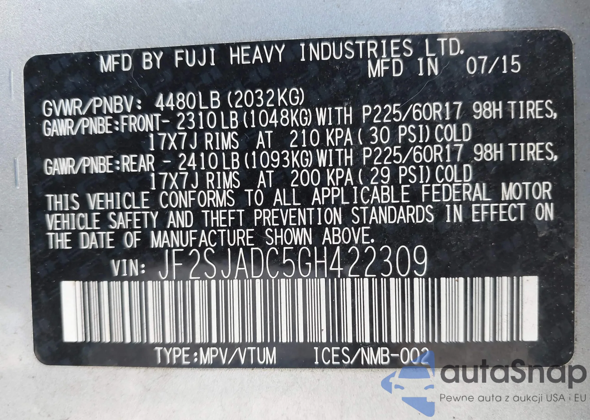 JF2SJADC5GH422309 IAAI