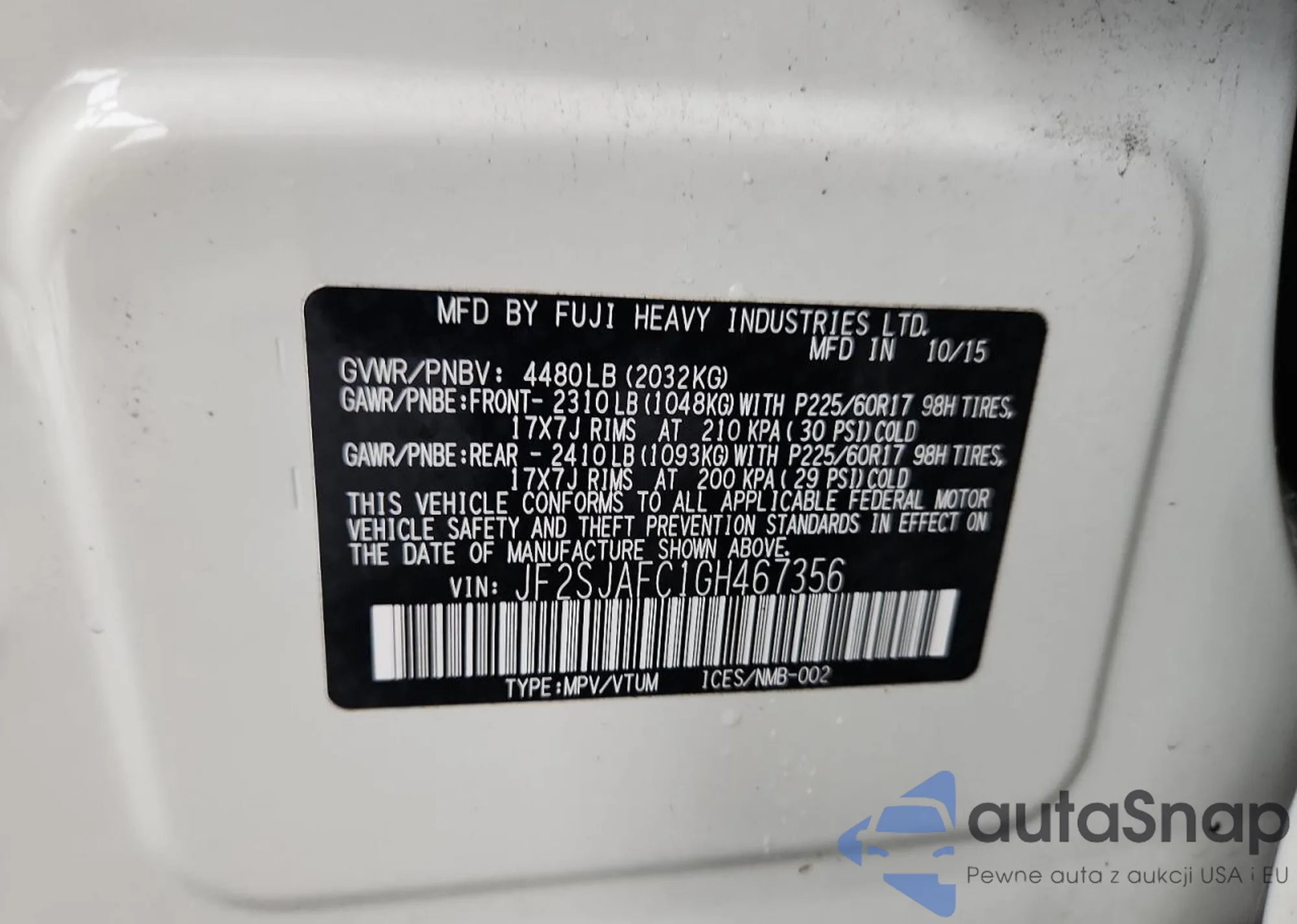 • VIN: JF2SJAFC1GH467356