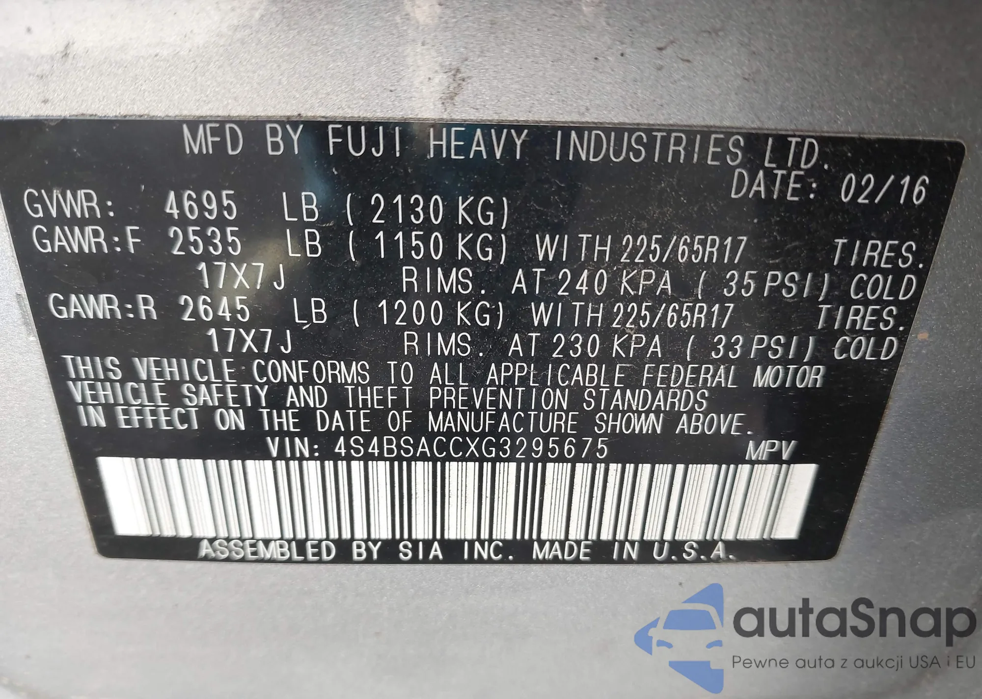VIN: 4S4BSACCXG3295675