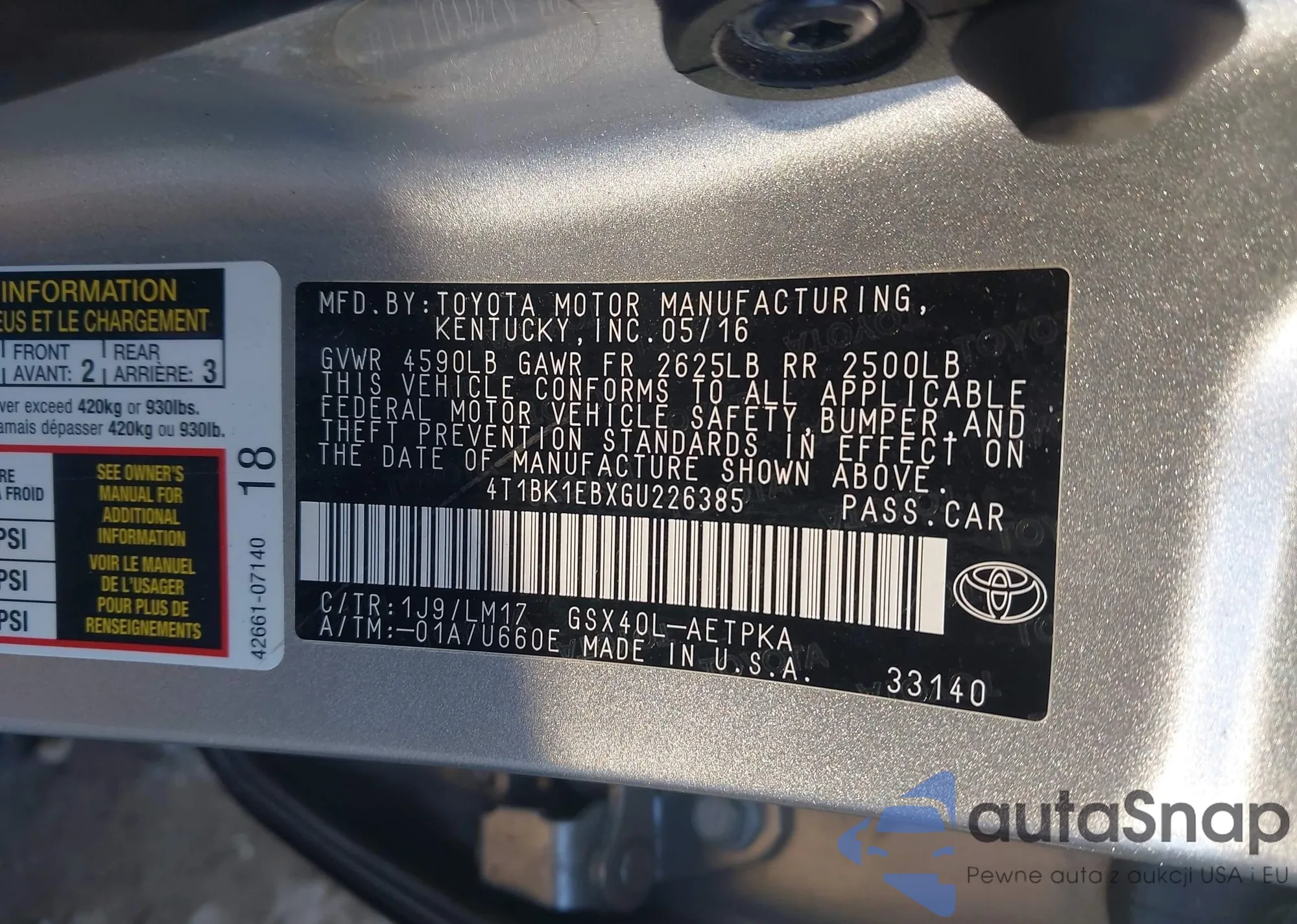 • VIN: 4T1BK1EBXGU226385