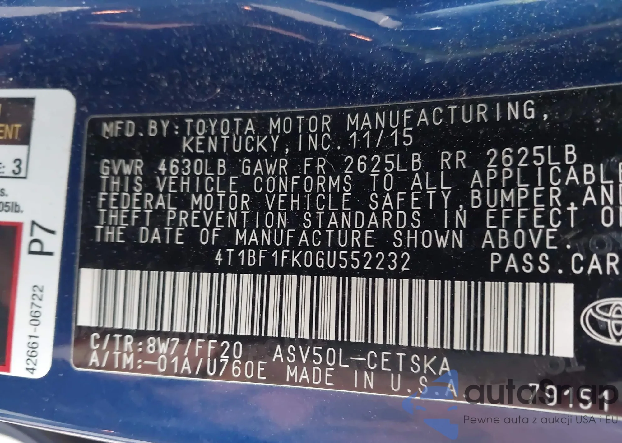 VIN: 4T1BF1FK0GU552232