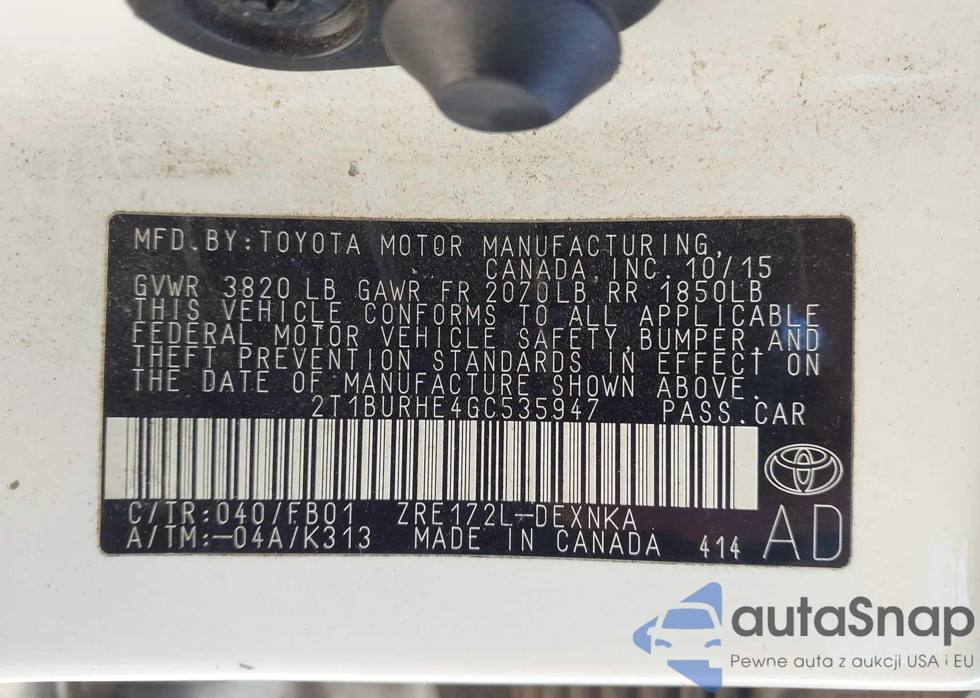 Samochód Toyota Corolla 2016 (VIN 2T1BURHE4GC535947) nie był wcześniej licytowany. Dokumenty są czyste, przebieg odpowiada lub jest niższy niż średnia rynku. Sprzedaje go firma ubezpieczeniowa – polecamy zakup. Dostawa do portu zajmie ok. 6–8 tygodni.