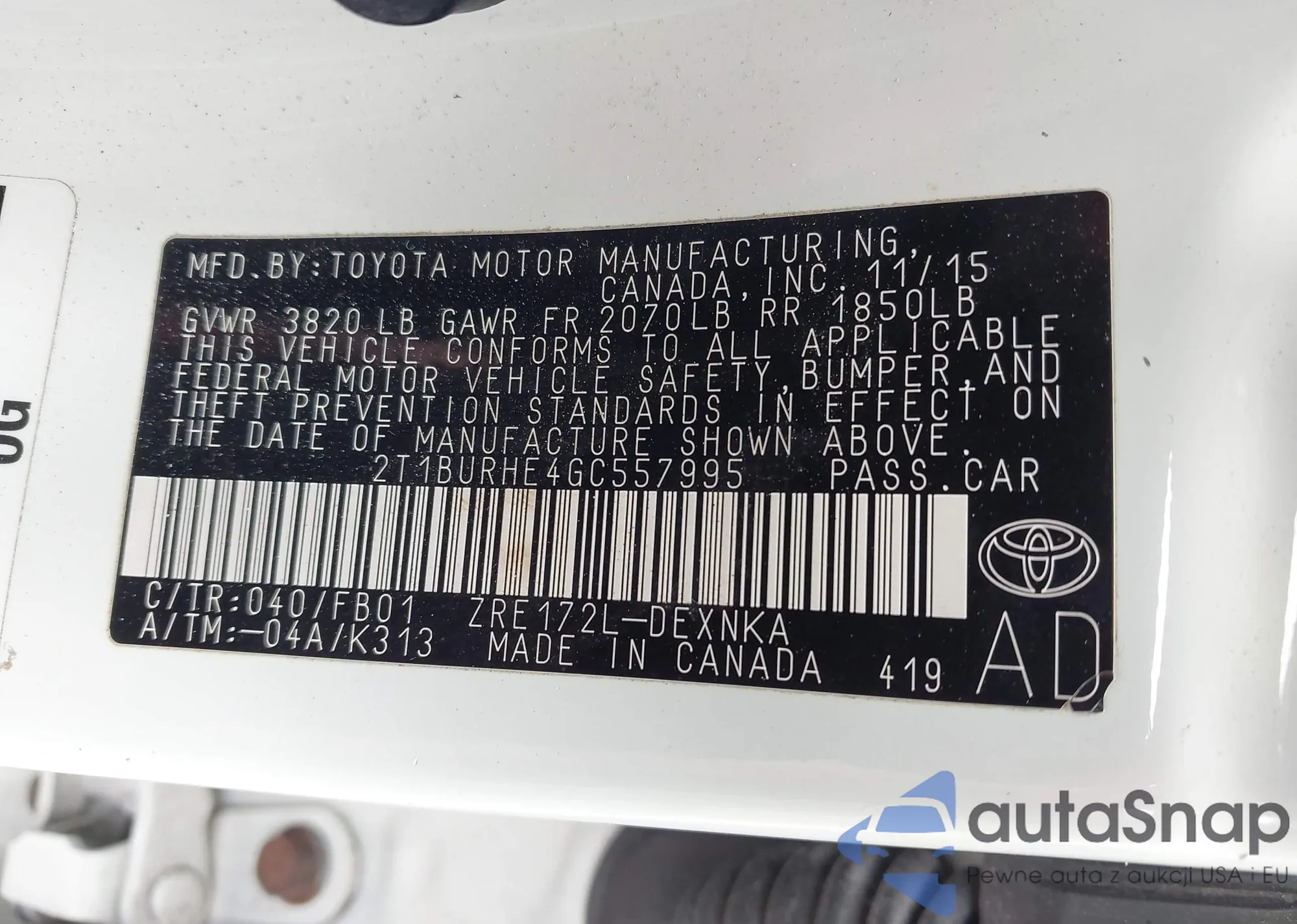 Toyota Corolla 2016 – Historia pojazdu (sprzedany na IAAI)