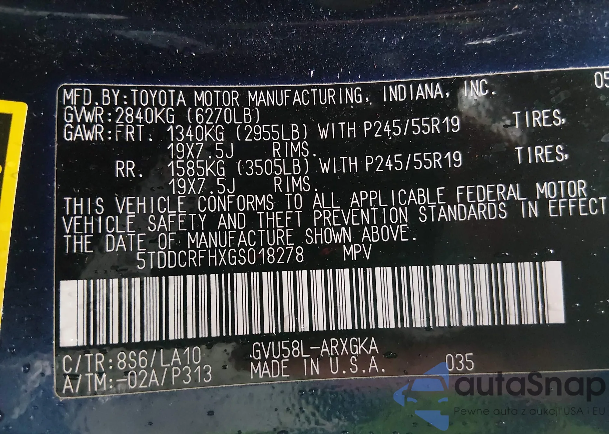 • VIN: 5TDDCRFHXGS018278