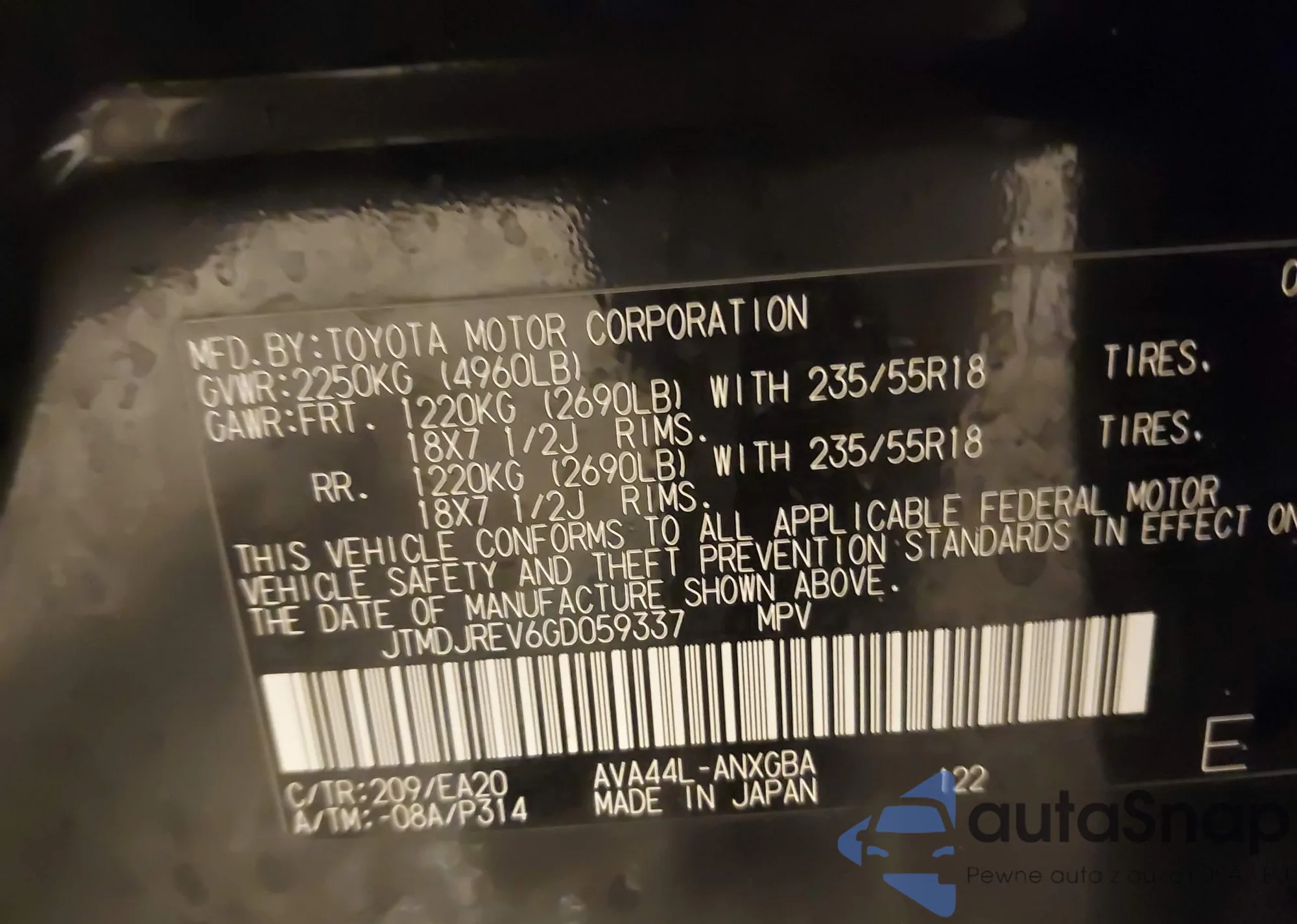 Samochód Toyota RAV 4 2016 (VIN JTMDJREV6GD059337) nie był wcześniej licytowany. Dokumenty są czyste, przebieg odpowiada lub jest niższy niż średnia rynku. Sprzedaje go firma ubezpieczeniowa – polecamy zakup. Dostawa do portu zajmie ok. 6–8 tygodni.