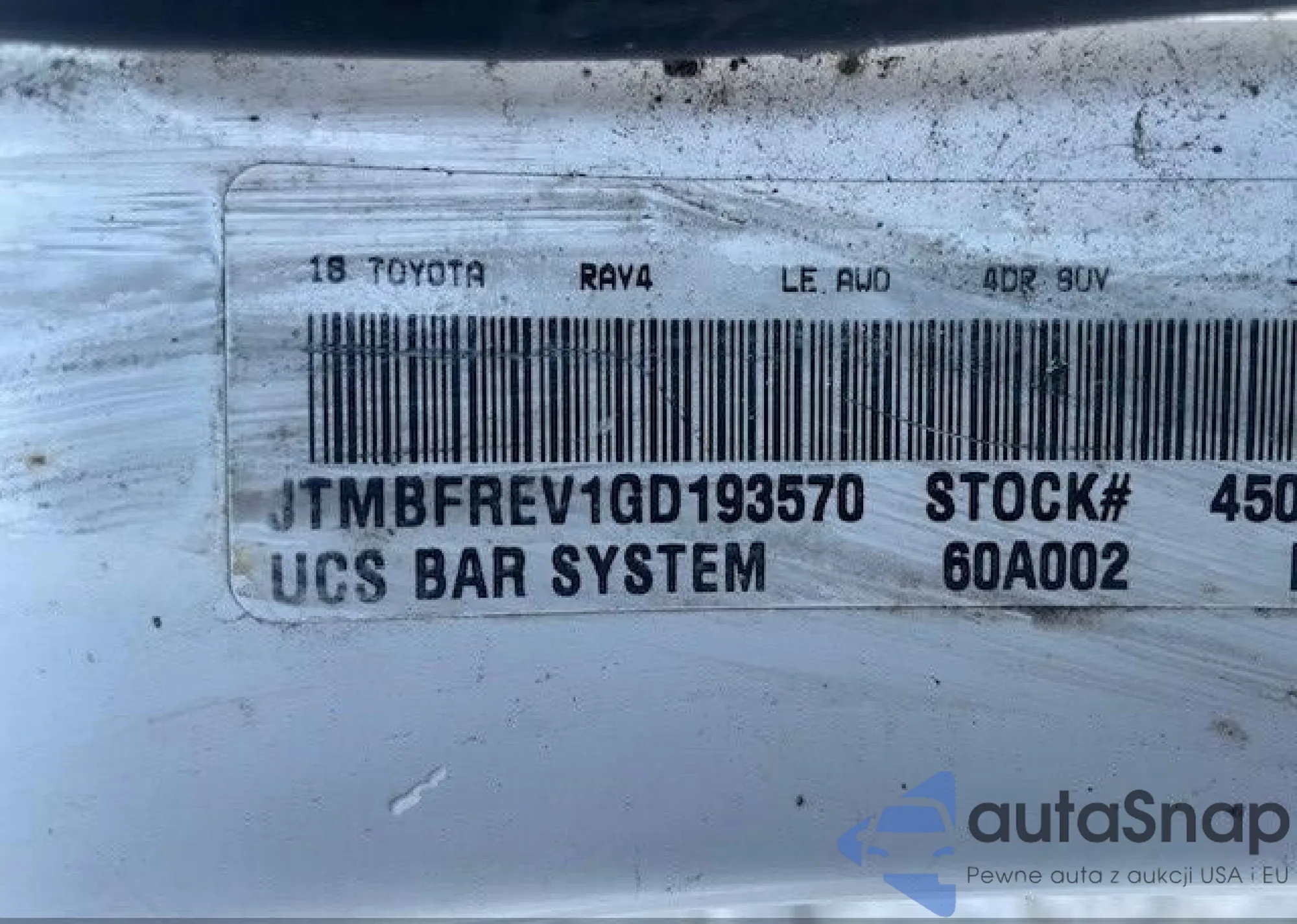 Samochód Toyota RAV 4 2016 (VIN JTMBFREV1GD193570) ma dokumenty uniemożliwiające rejestrację. Mogą pojawić się trudności przy eksporcie i rejestracji. Skontaktuj się z ekspertami AutaSnap w celu znalezienia alternatywy.