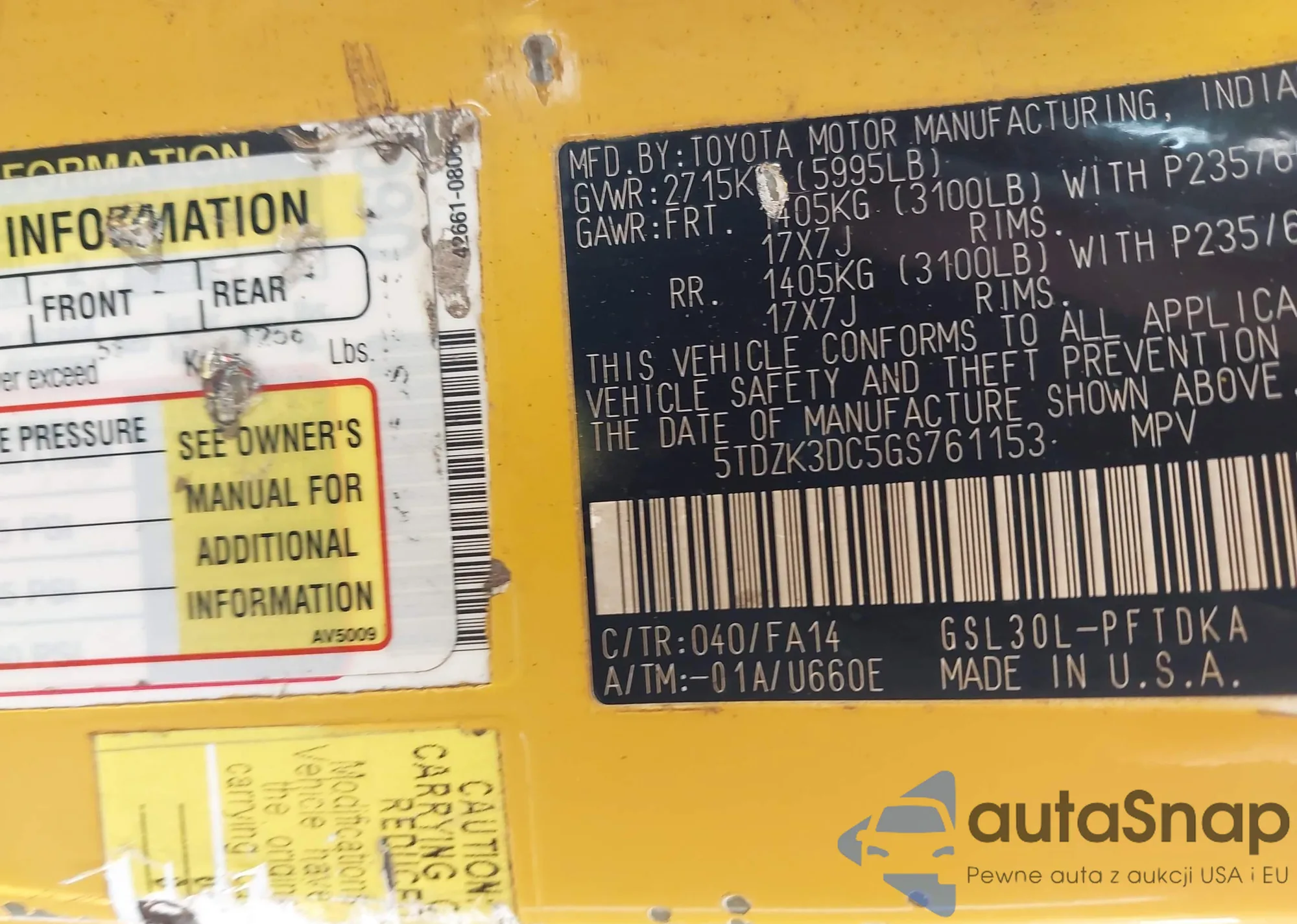• VIN: 5TDZK3DC5GS761153