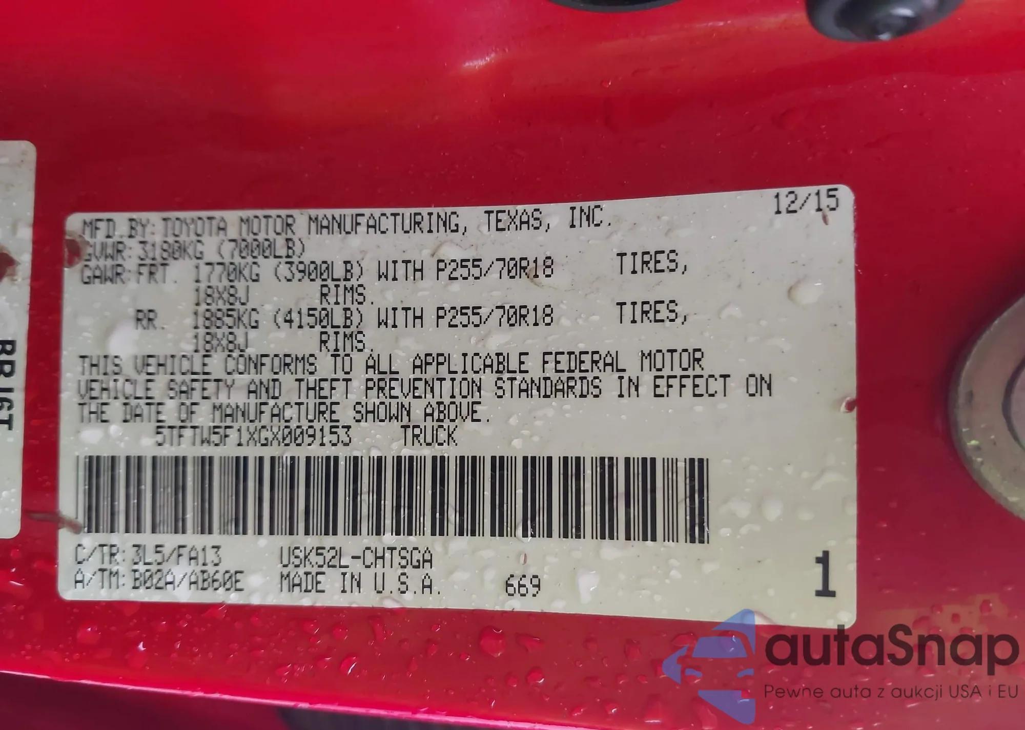 Samochód Toyota Tundra 2016 (VIN 5TFTW5F1XGX009153) nie był wcześniej licytowany. Dokumenty są czyste, przebieg odpowiada lub jest niższy niż średnia rynku. Sprzedaje go firma ubezpieczeniowa – polecamy zakup. Dostawa do portu zajmie ok. 6–8 tygodni.