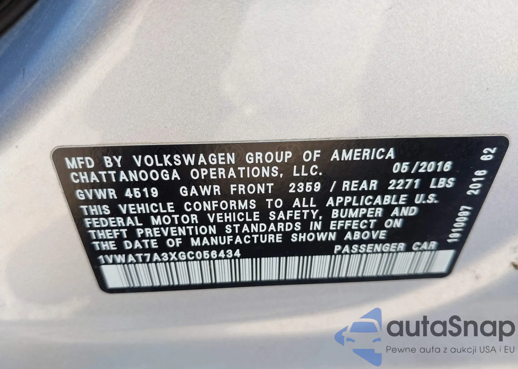 • VIN: 1VWAT7A3XGC056434