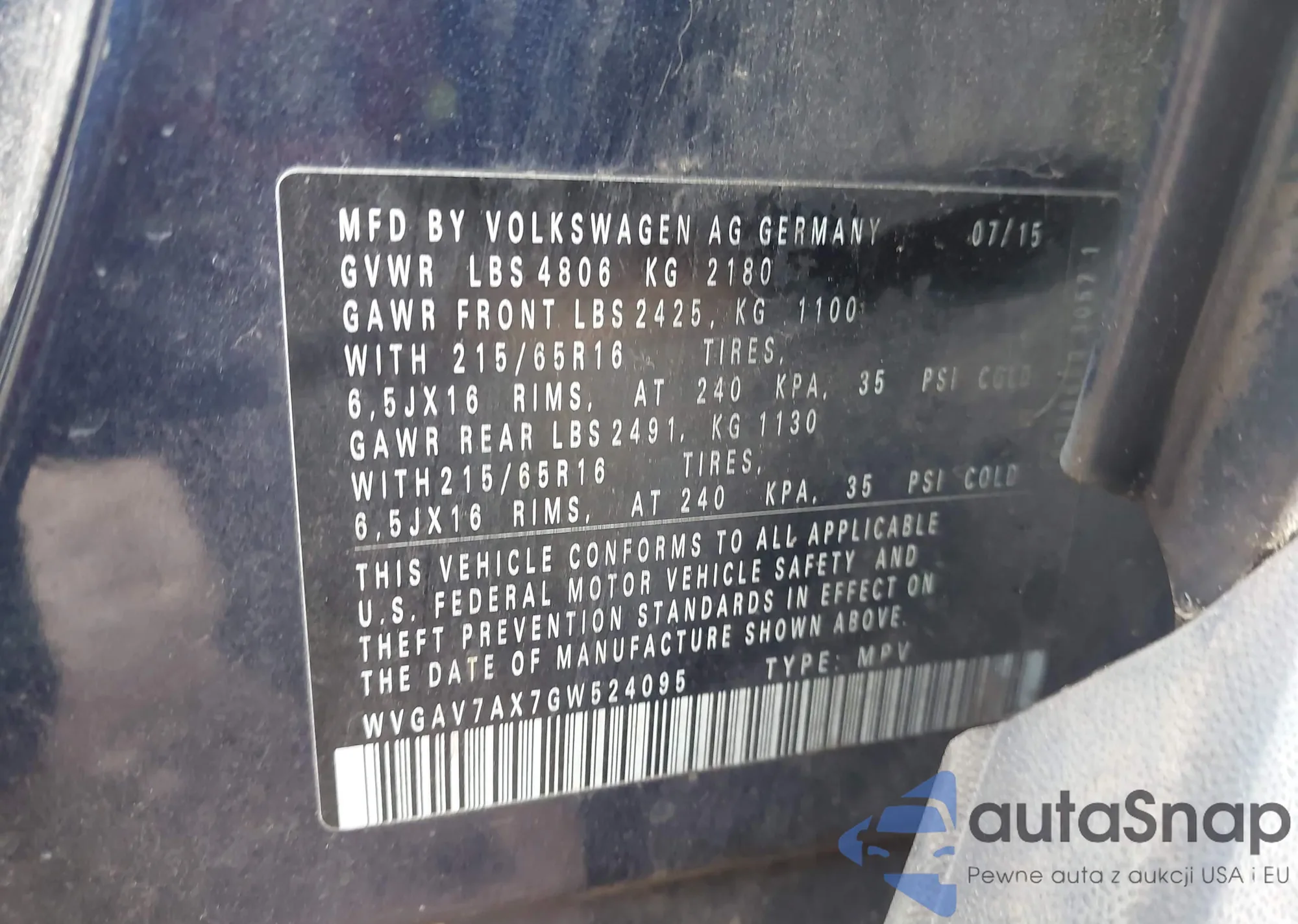 VIN: WVGAV7AX7GW524095