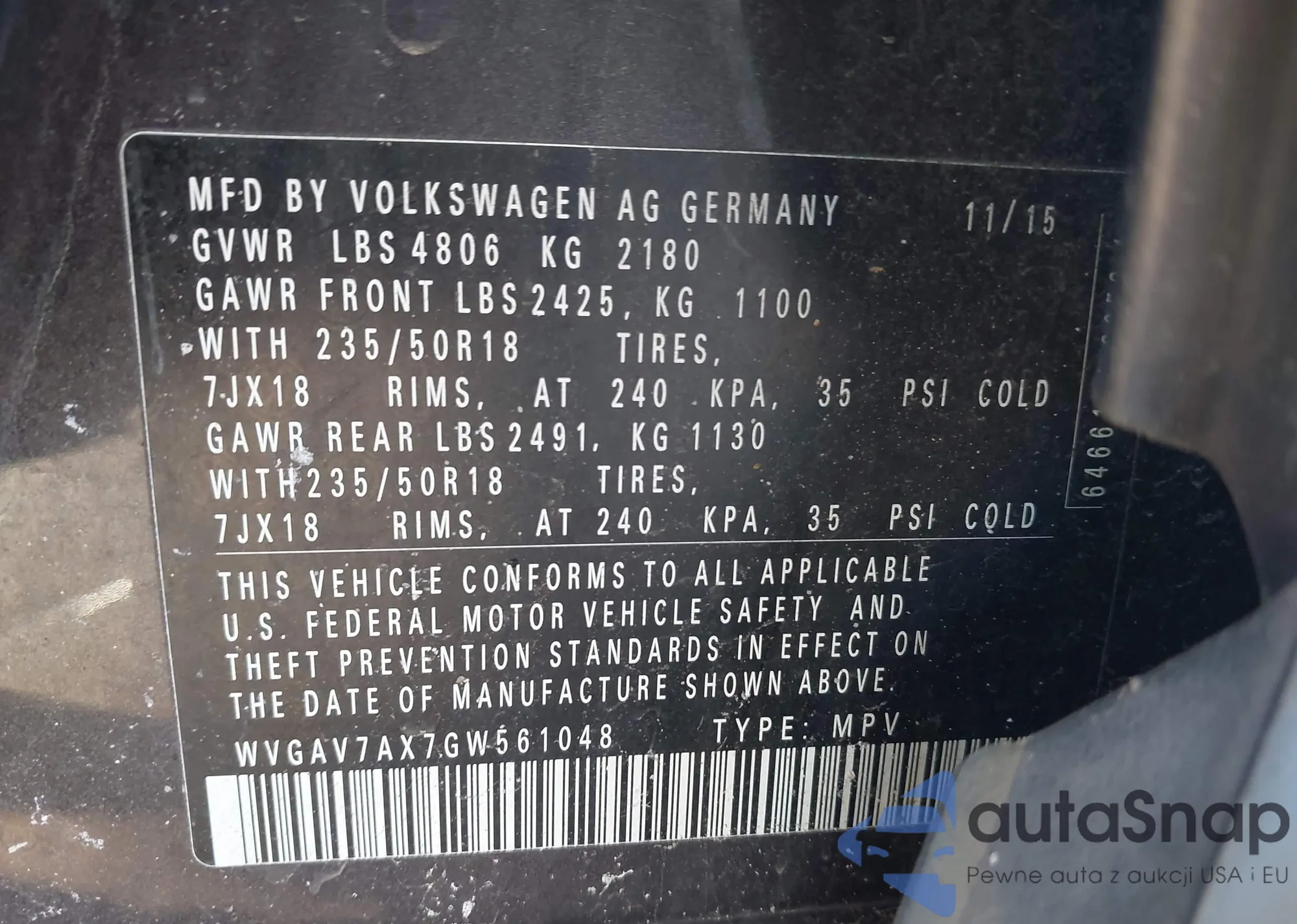 • VIN: WVGAV7AX7GW561048