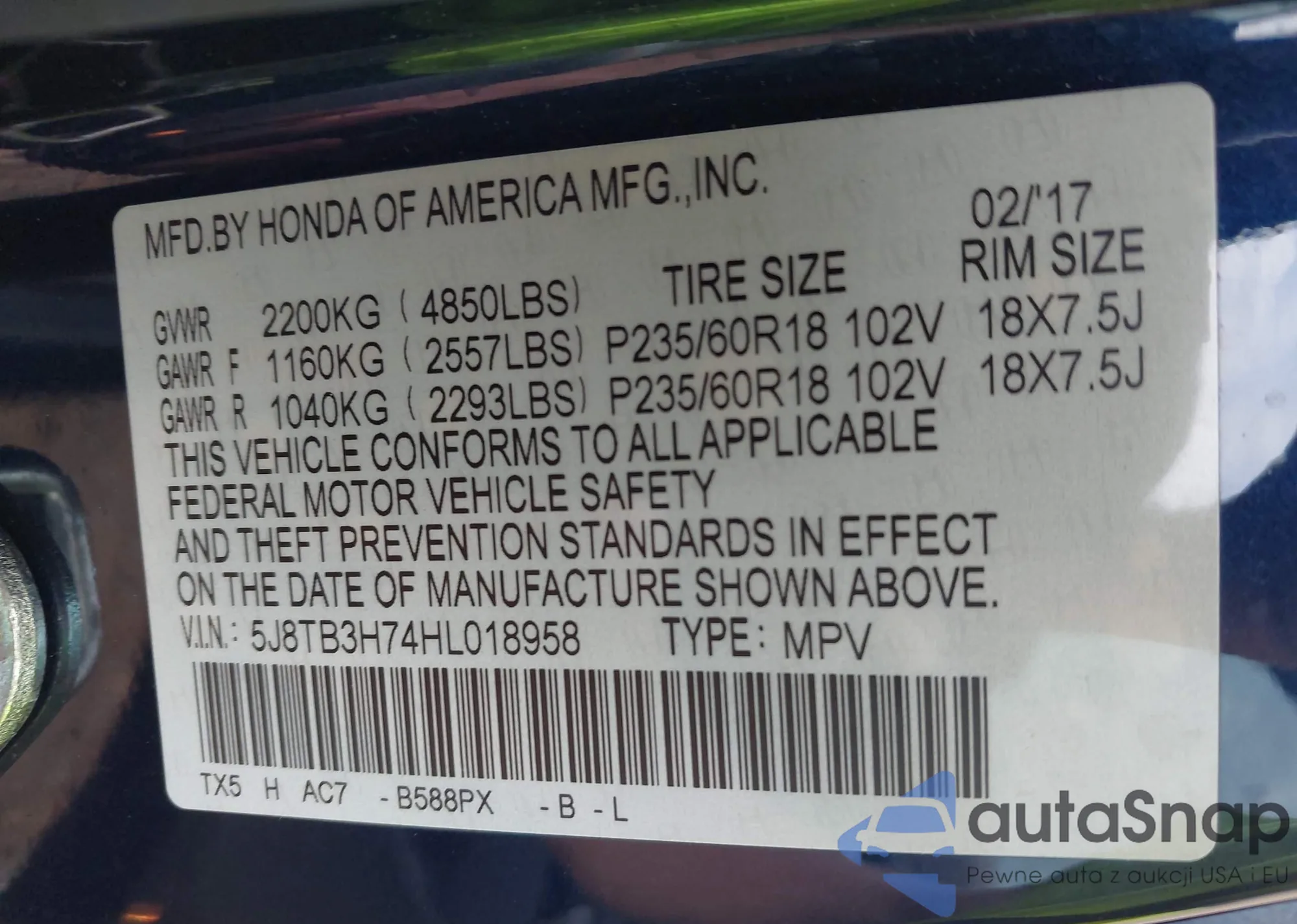 VIN: 5J8TB3H74HL018958