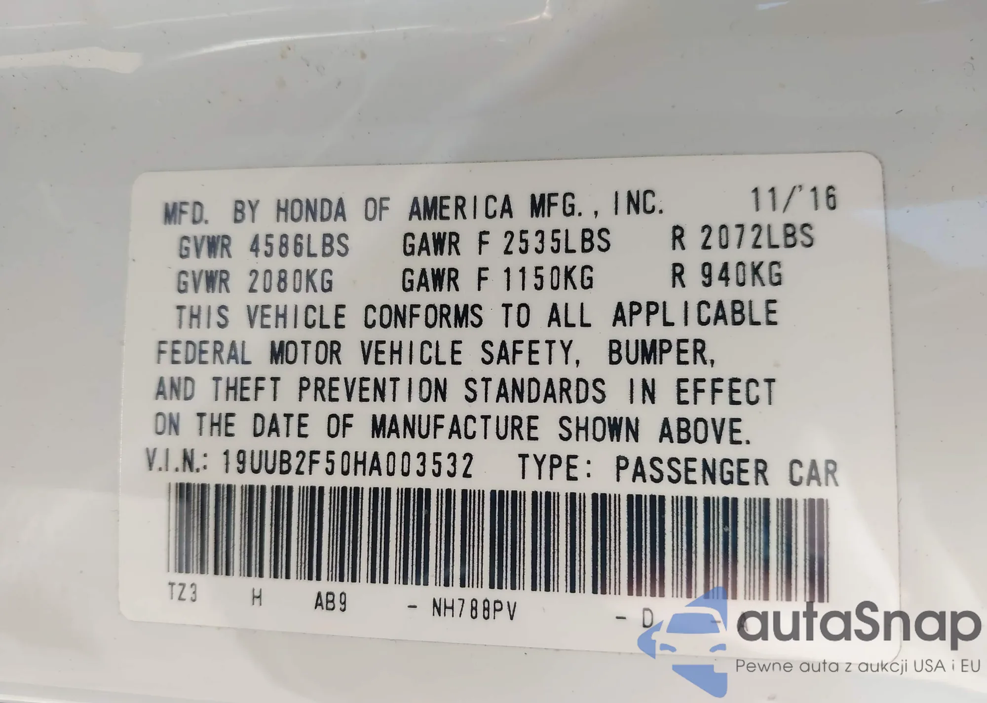 19UUB2F50HA003532 IAAI