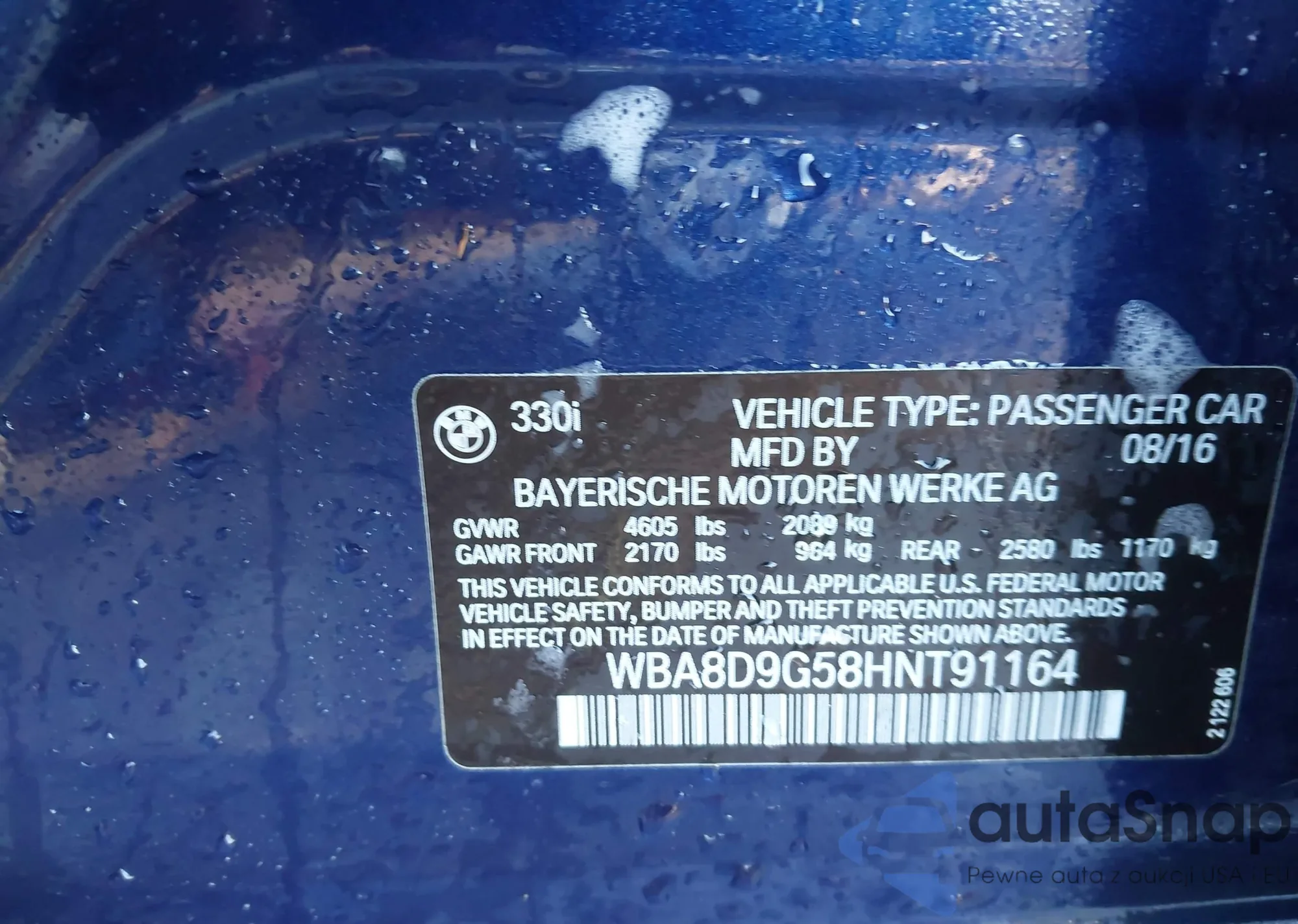 Samochód BMW 3er 2017 (VIN WBA8D9G58HNT91164) nie był wcześniej licytowany. Dokumenty są czyste, przebieg odpowiada lub jest niższy niż średnia rynku. Sprzedaje go firma ubezpieczeniowa – polecamy zakup. Dostawa do portu zajmie ok. 6–8 tygodni.