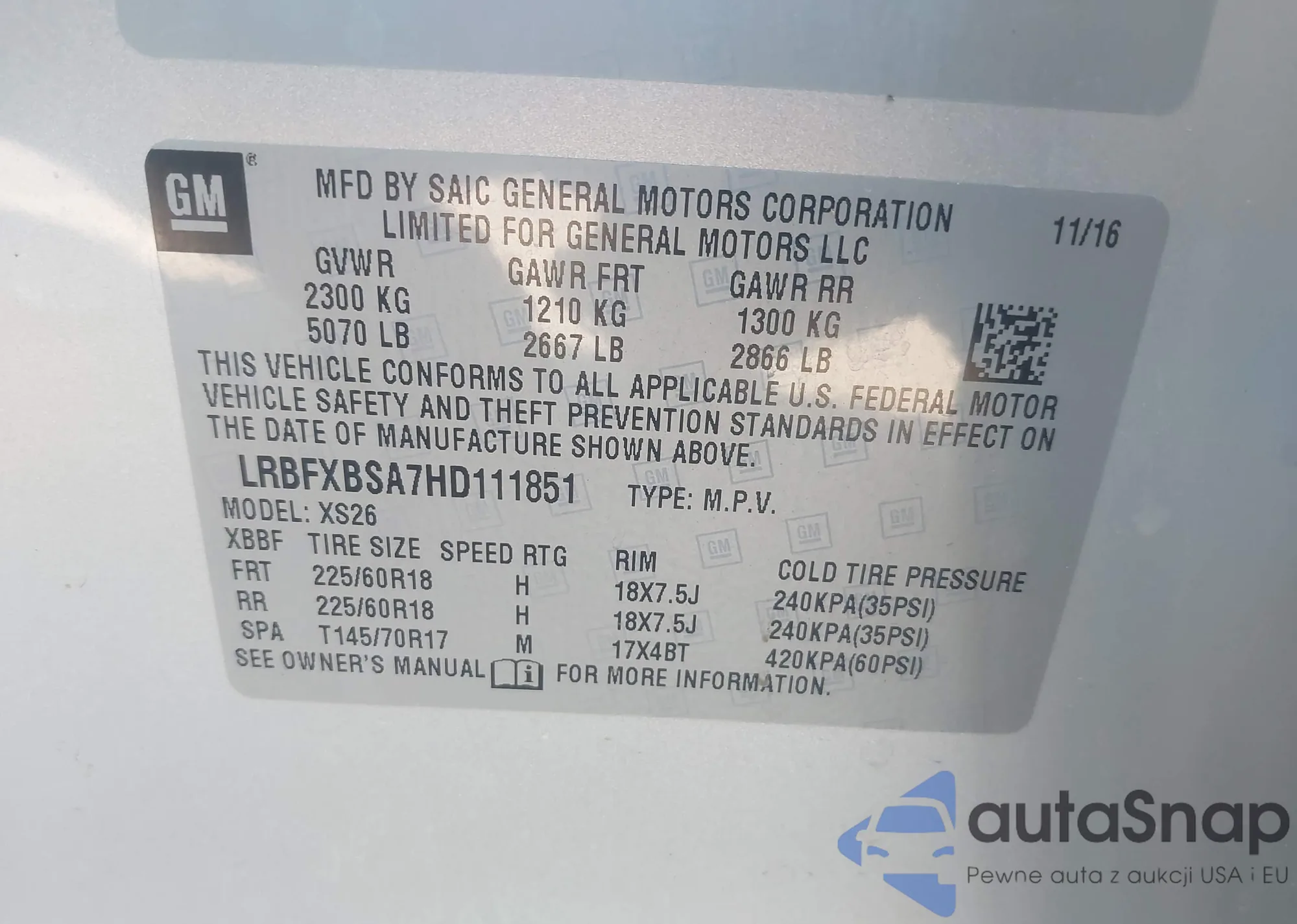• VIN: LRBFXBSA7HD111851