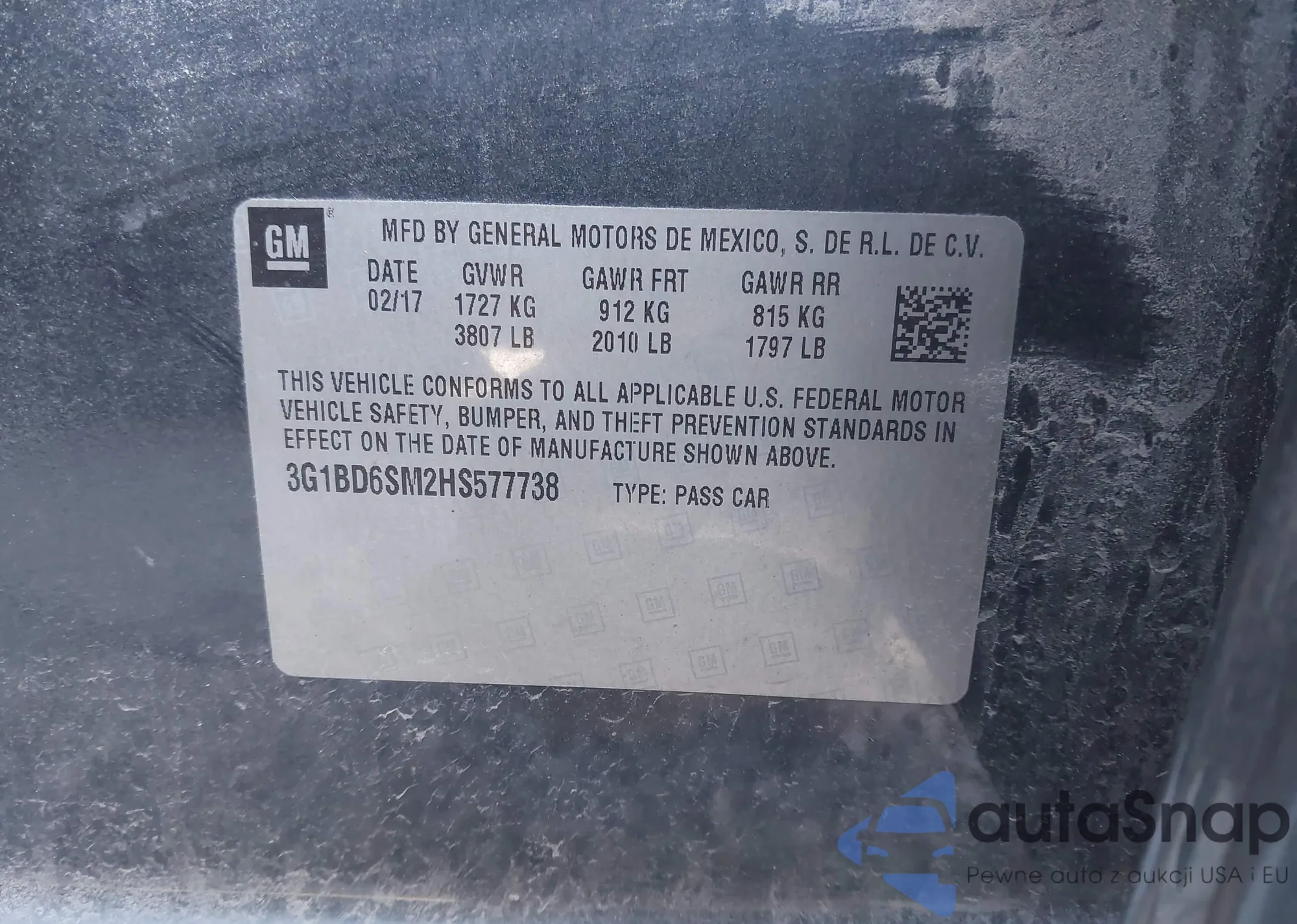 Samochód Chevrolet Cruze 2017 (VIN 3G1BD6SM2HS577738) nie był wcześniej licytowany. Dokumenty są czyste, przebieg odpowiada lub jest niższy niż średnia rynku. Sprzedaje go firma ubezpieczeniowa – polecamy zakup. Dostawa do portu zajmie ok. 6–8 tygodni.