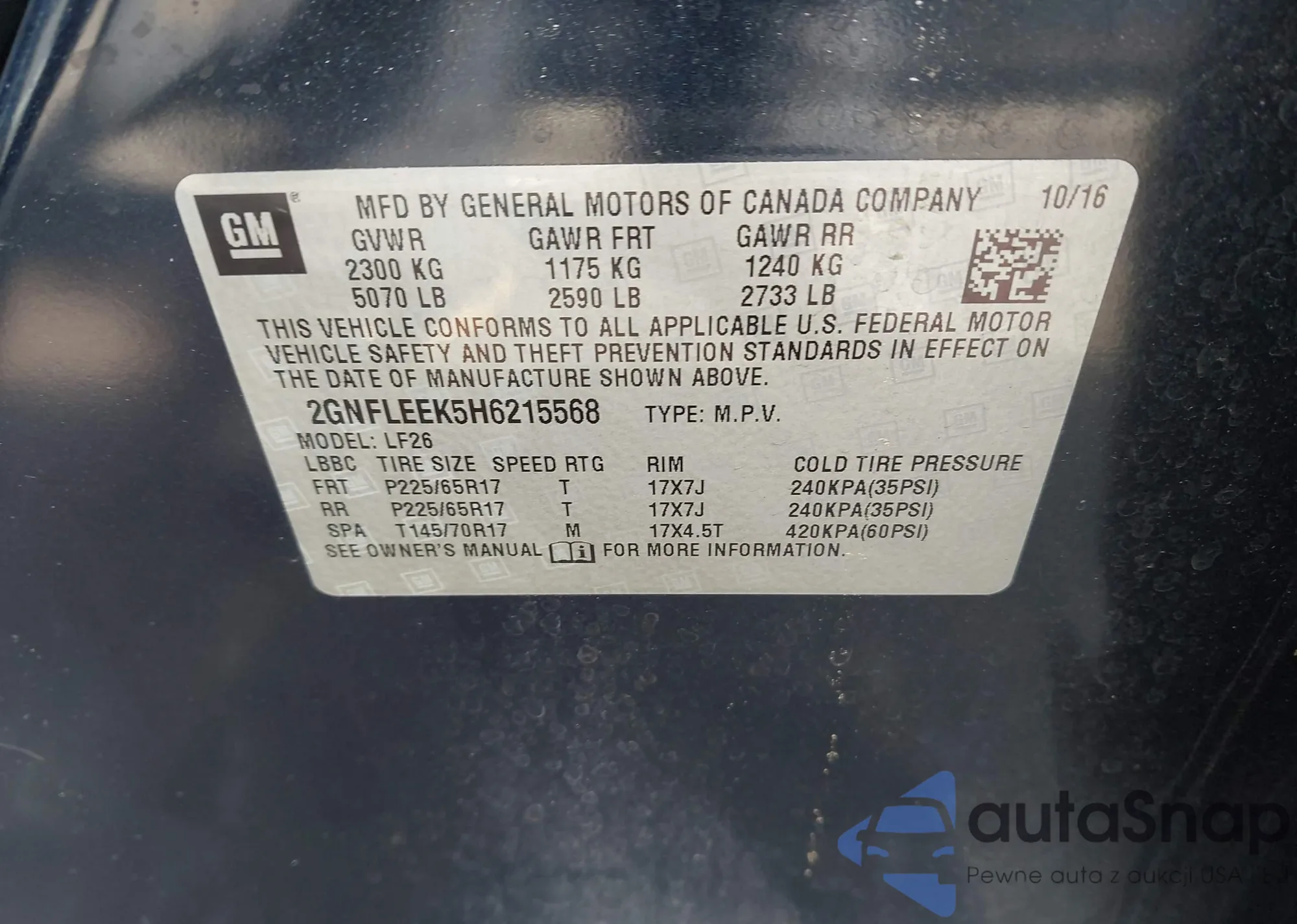 VIN: 2GNFLEEK5H6215568