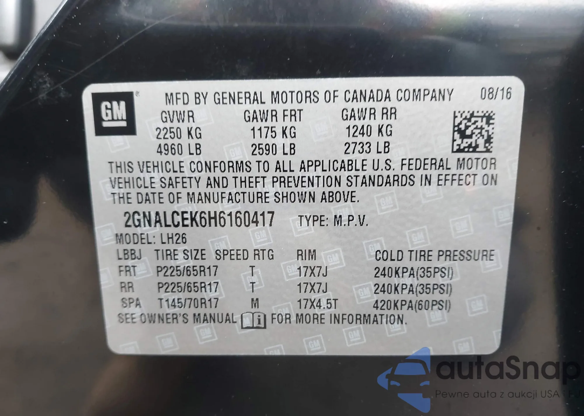 VIN: 2GNALCEK6H6160417