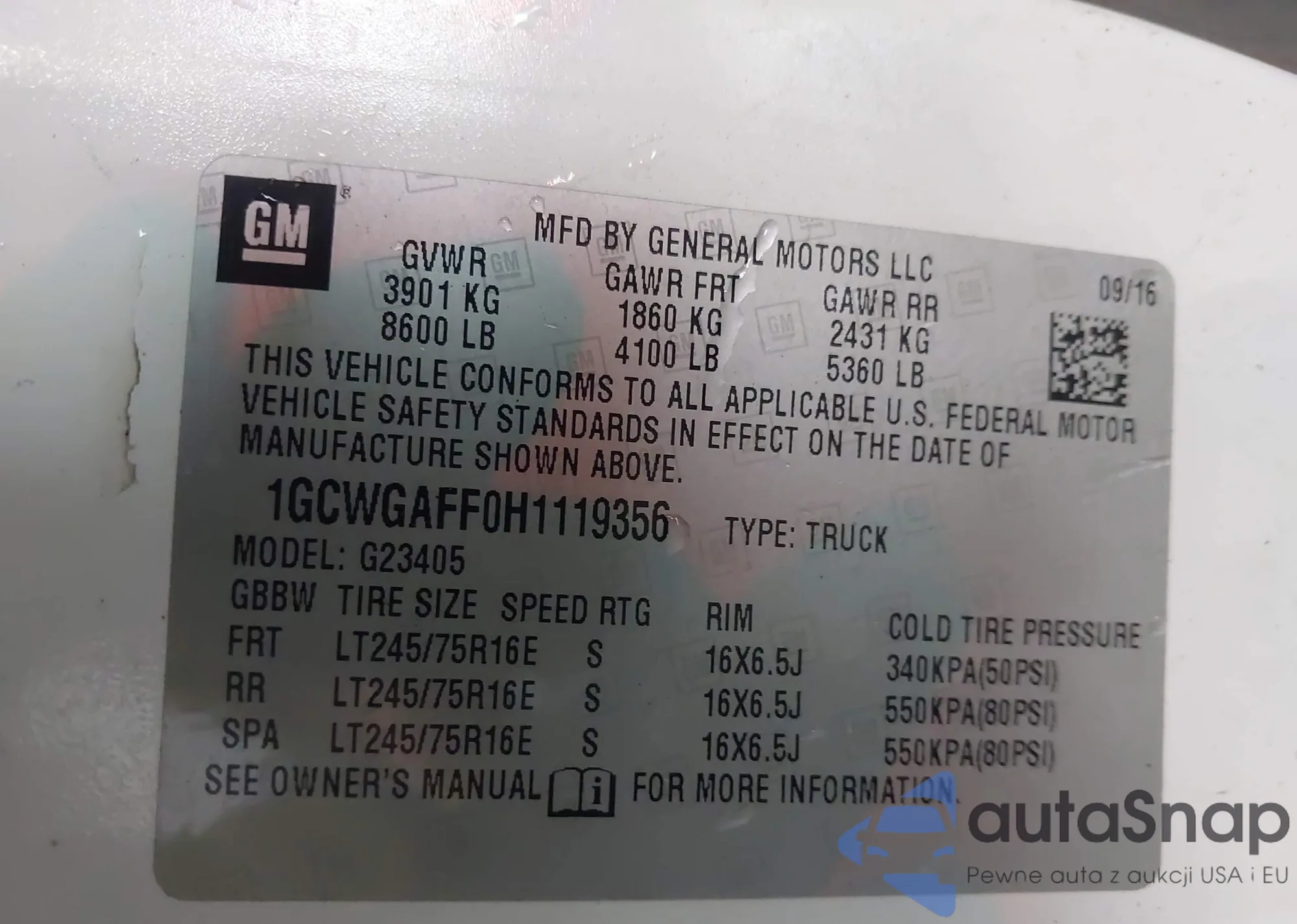 VIN: 1GCWGAFF0H1119356