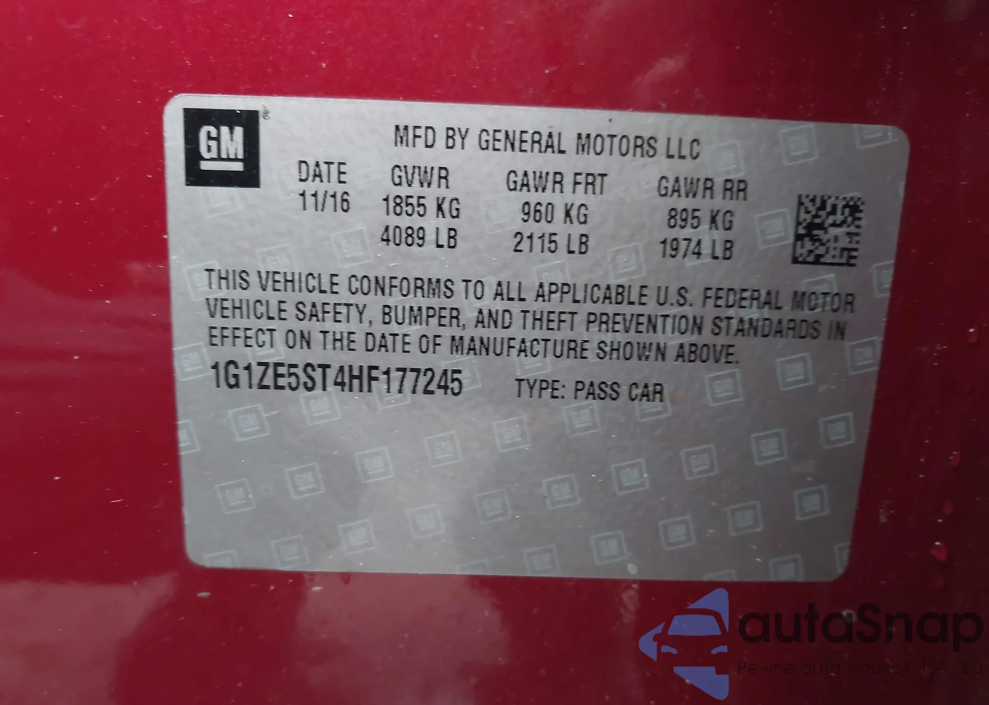 • VIN: 1G1ZE5ST4HF177245