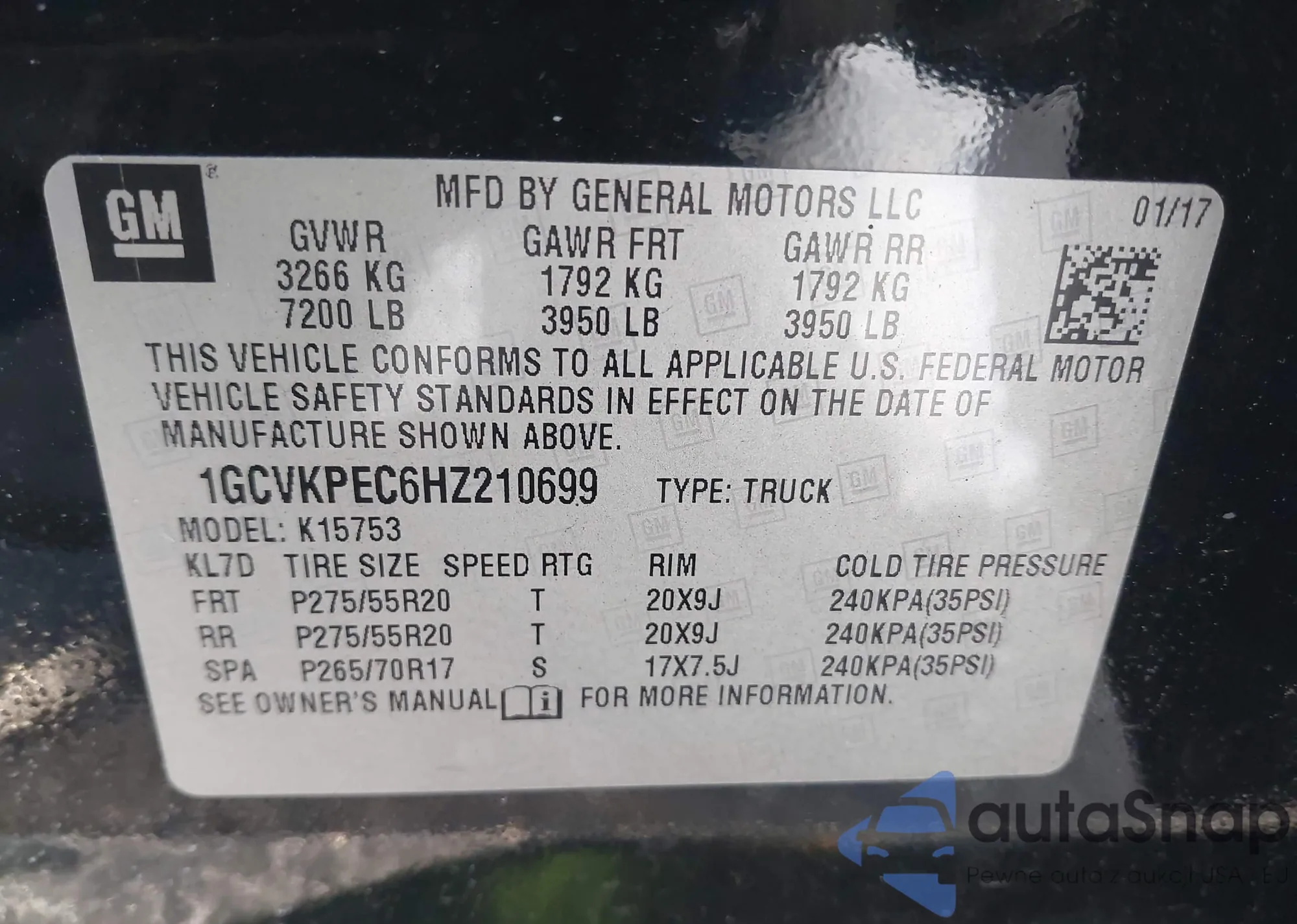 VIN: 1GCVKPEC6HZ210699