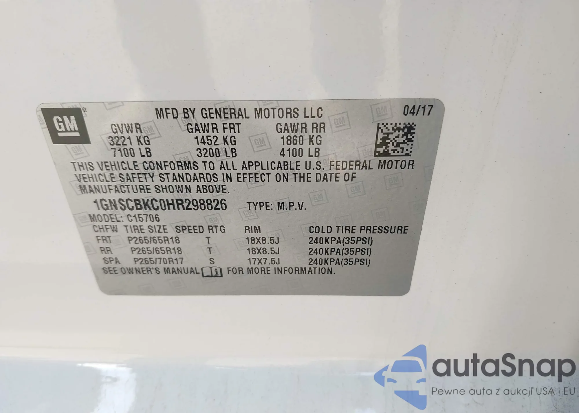 Samochód Chevrolet Tahoe 2017 (VIN 1GNSCBKC0HR298826) nie był wcześniej licytowany. Dokumenty są czyste, przebieg odpowiada lub jest niższy niż średnia rynku. Sprzedaje go firma ubezpieczeniowa – polecamy zakup. Dostawa do portu zajmie ok. 6–8 tygodni.