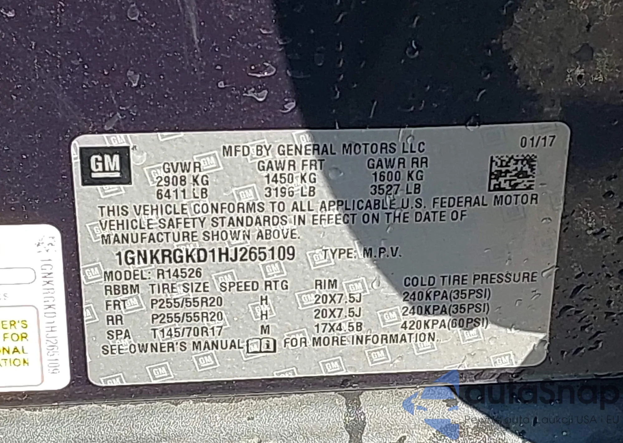 Samochód Chevrolet Traverse 2017 (VIN 1GNKRGKD1HJ265109) nie był wcześniej licytowany. Dokumenty są czyste, przebieg odpowiada lub jest niższy niż średnia rynku. Sprzedaje go firma ubezpieczeniowa – polecamy zakup. Dostawa do portu zajmie ok. 6–8 tygodni.
