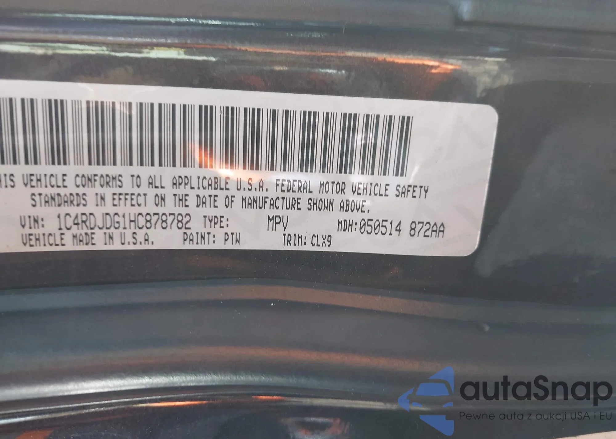 • VIN: 1C4RDJDG1HC878782