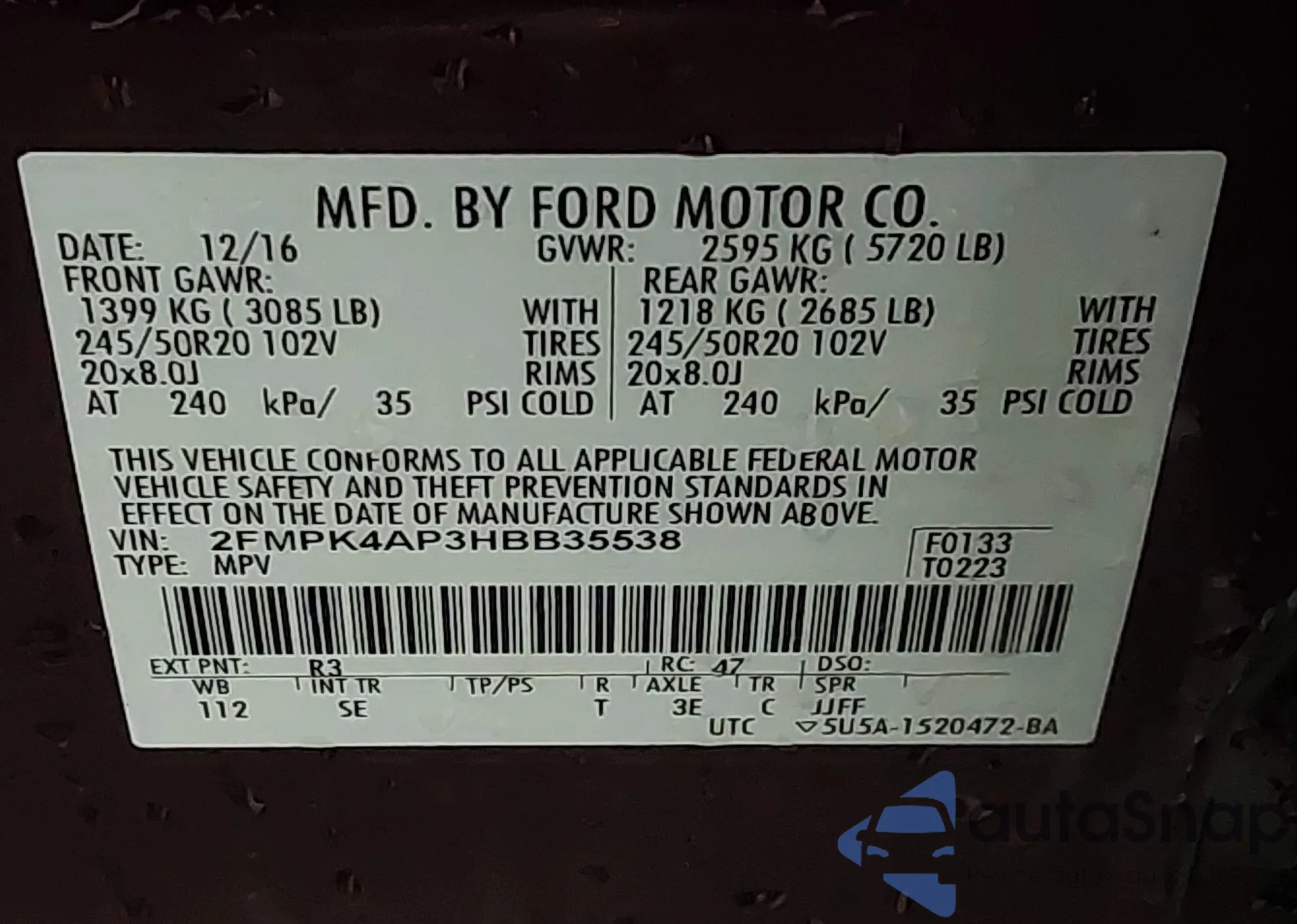 Samochód Ford Edge 2017 (VIN 2FMPK4AP3HBB35538) nie był wcześniej licytowany. Dokumenty są czyste, przebieg odpowiada lub jest niższy niż średnia rynku. Sprzedaje go firma ubezpieczeniowa – polecamy zakup. Dostawa do portu zajmie ok. 6–8 tygodni.