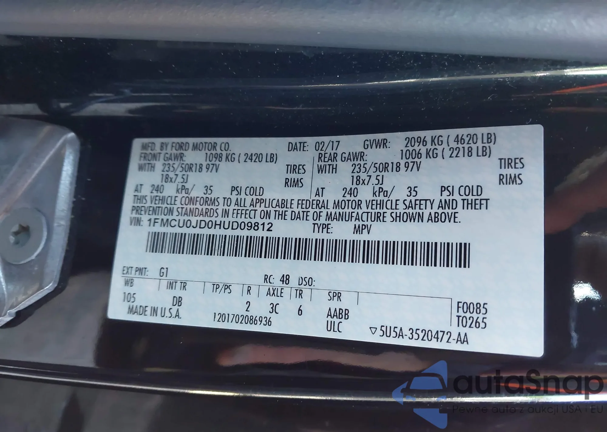 VIN: 1FMCU0JD0HUD09812
