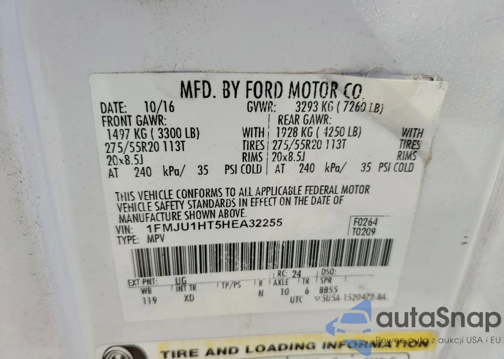 Samochód Ford Expedition 2017 (VIN 1FMJU1HT5HEA32255) ma dokumenty uniemożliwiające rejestrację. Mogą pojawić się trudności przy eksporcie i rejestracji. Skontaktuj się z ekspertami AutaSnap w celu znalezienia alternatywy.