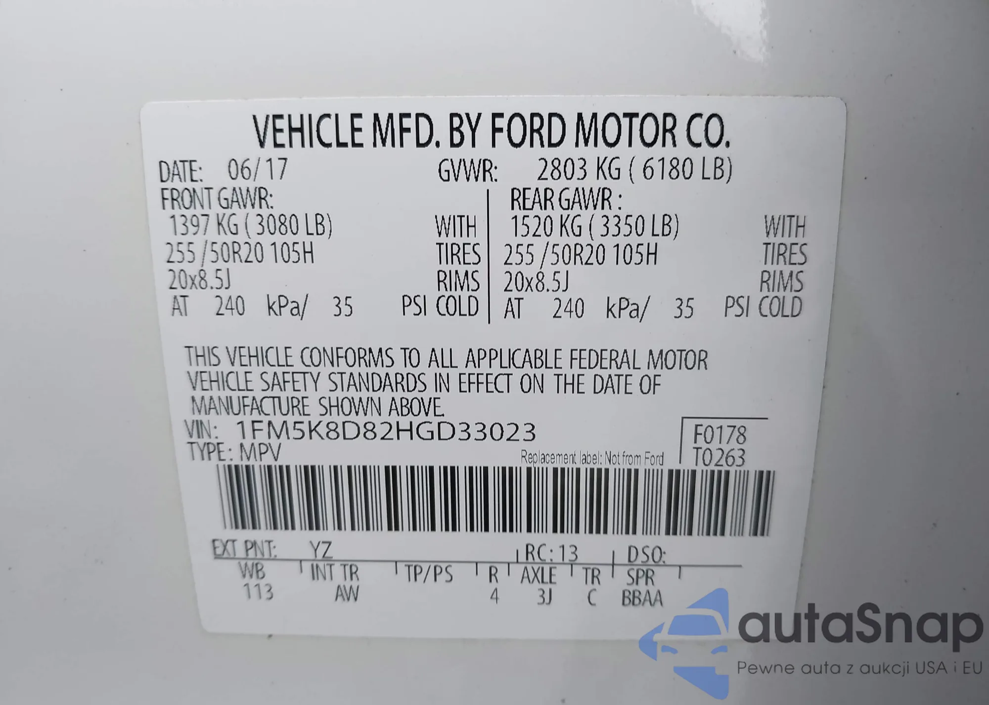VIN: 1FM5K8D82HGD33023