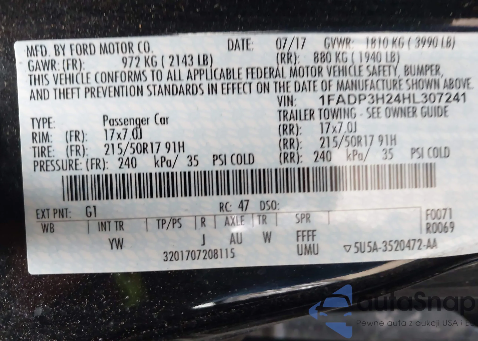 Samochód Ford Focus 2017 (VIN 1FADP3H24HL307241) nie był wcześniej licytowany. Dokumenty są czyste, przebieg odpowiada lub jest niższy niż średnia rynku. Sprzedaje go firma ubezpieczeniowa – polecamy zakup. Dostawa do portu zajmie ok. 6–8 tygodni.