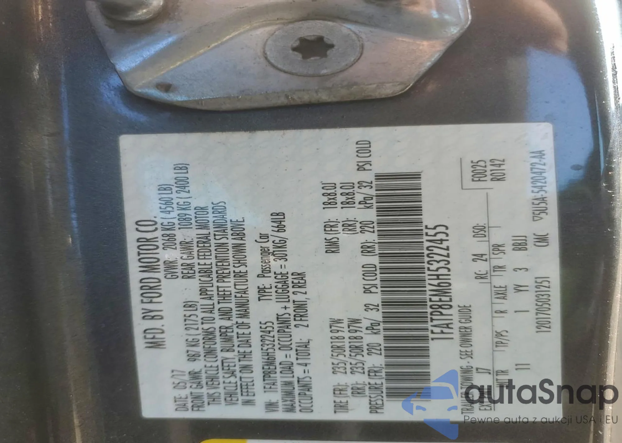 • VIN: 1FATP8EM6H5322455