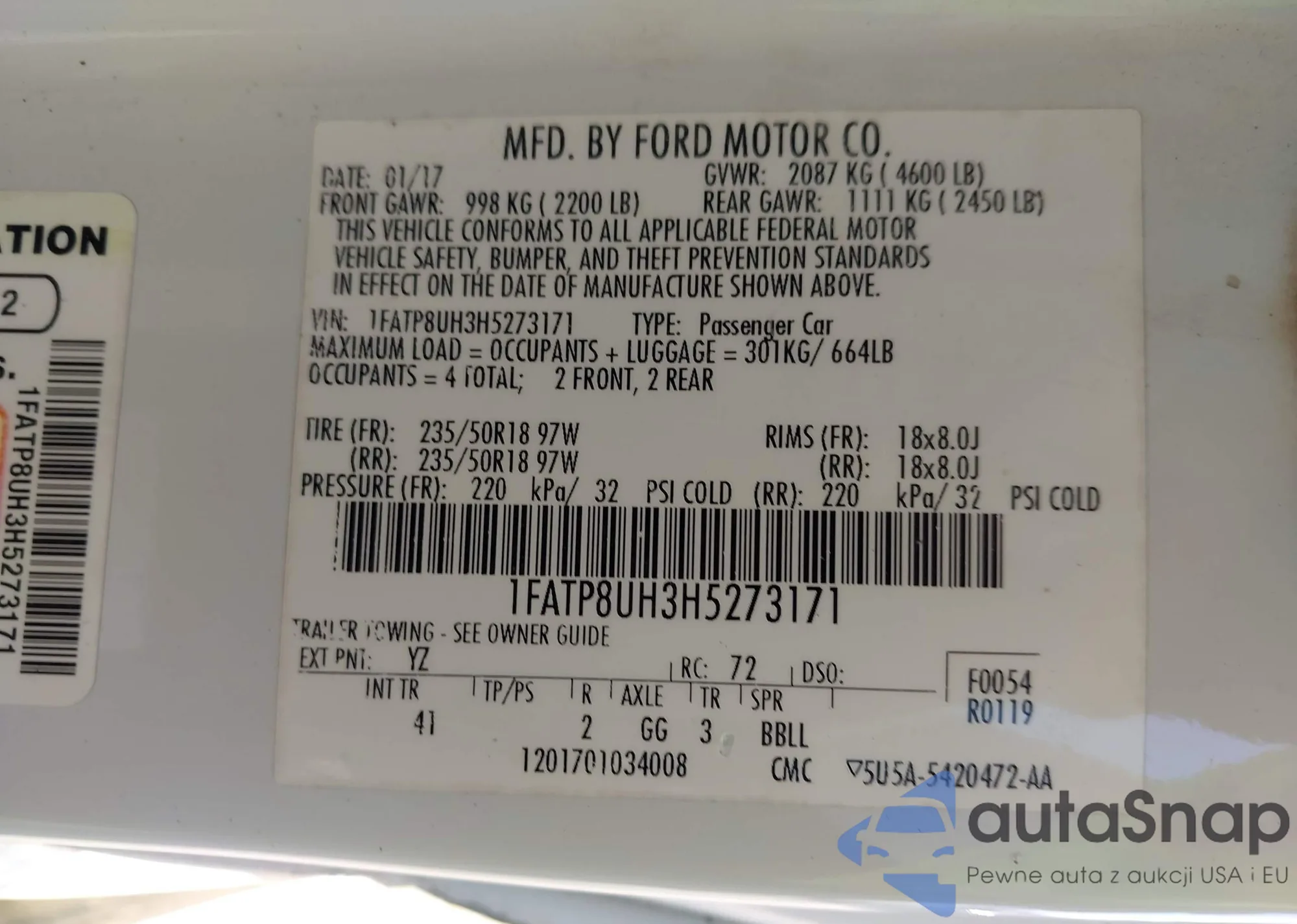 • VIN: 1FATP8UH3H5273171